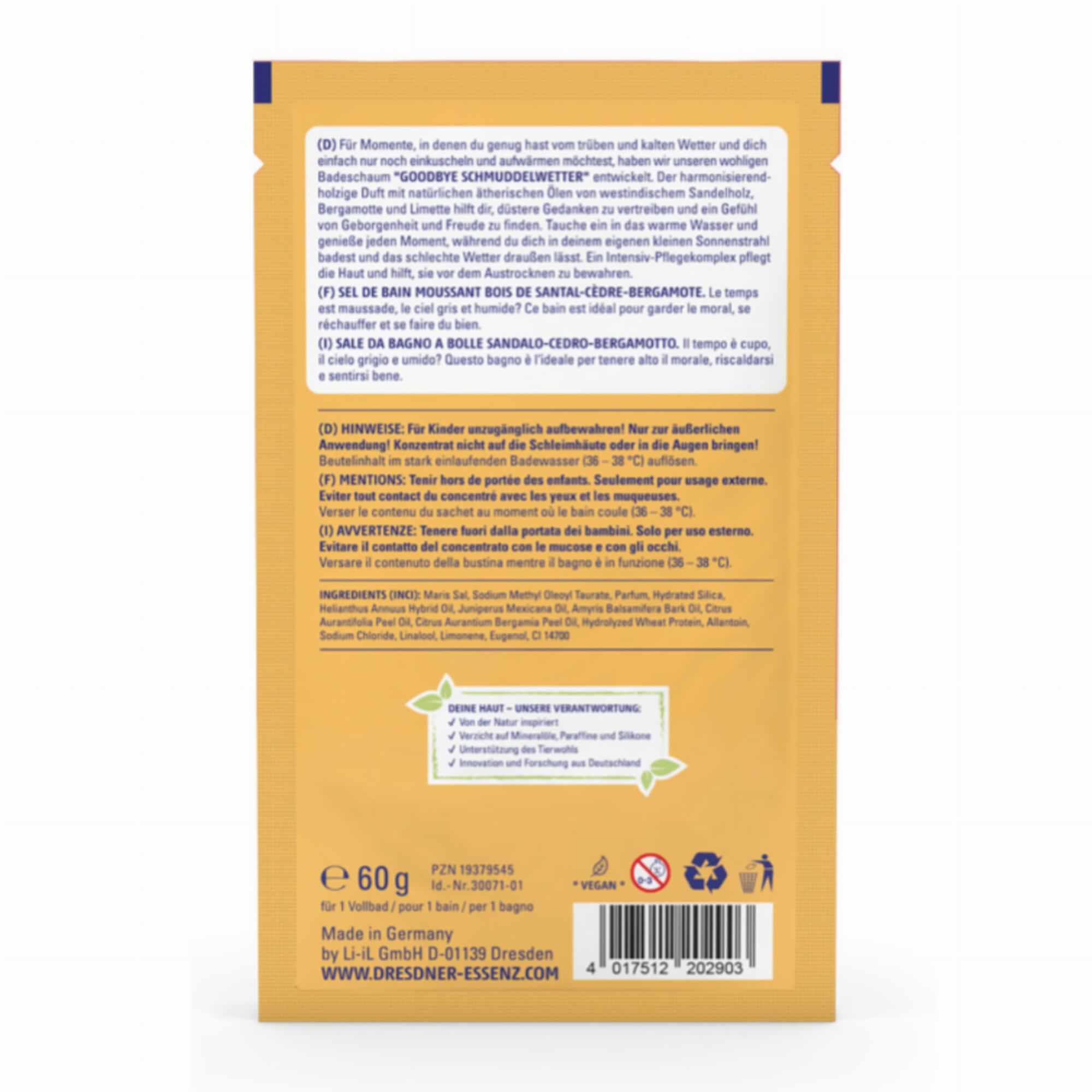 Ta pianka nie tylko pomoże Ci się zrelaksować, ale także intensywnie zadbają o Twoją skórę, zapobiegając jej wysuszeniu. Dzięki naturalnym składnikom, Twoja skóra będzie nawilżona i odżywiona, gotowa na nowe wyzwania. Odpocznij i zregeneruj się z pianką do kąpieli „GOODBYE DIRTY WEATHER” - zasługujesz na chwilę luksusu i relaksu po ciężkim dniu.