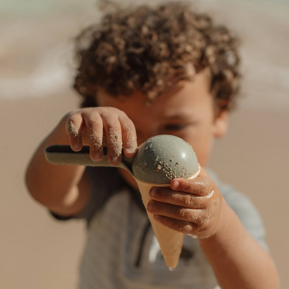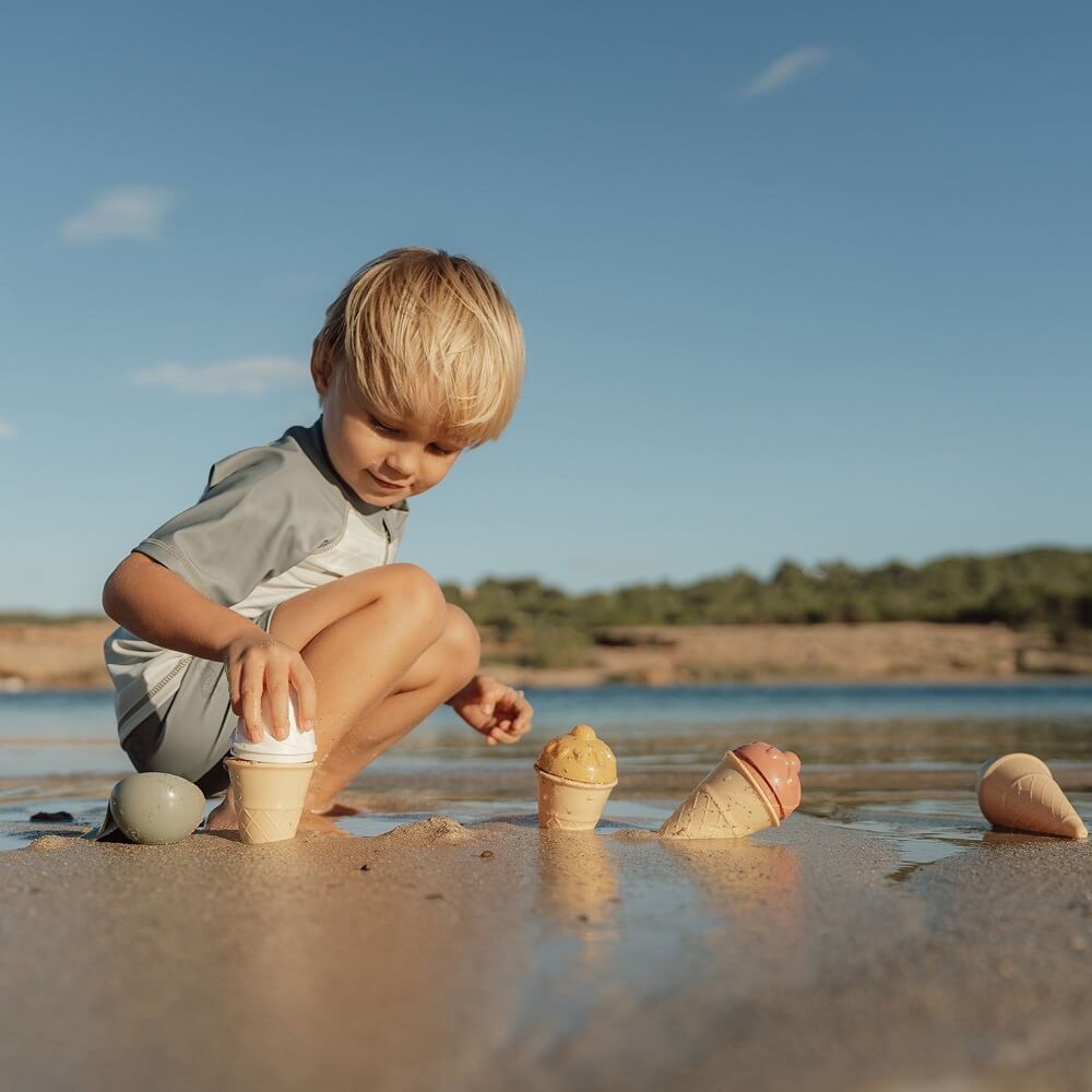 - Kompletny zestaw do lodów - zawiera wszystko, co potrzebne do pysznej zabawy: 4 zabawne rożki, poręczną łyżkę do lodów i 4 unikalne foremki do piasku.