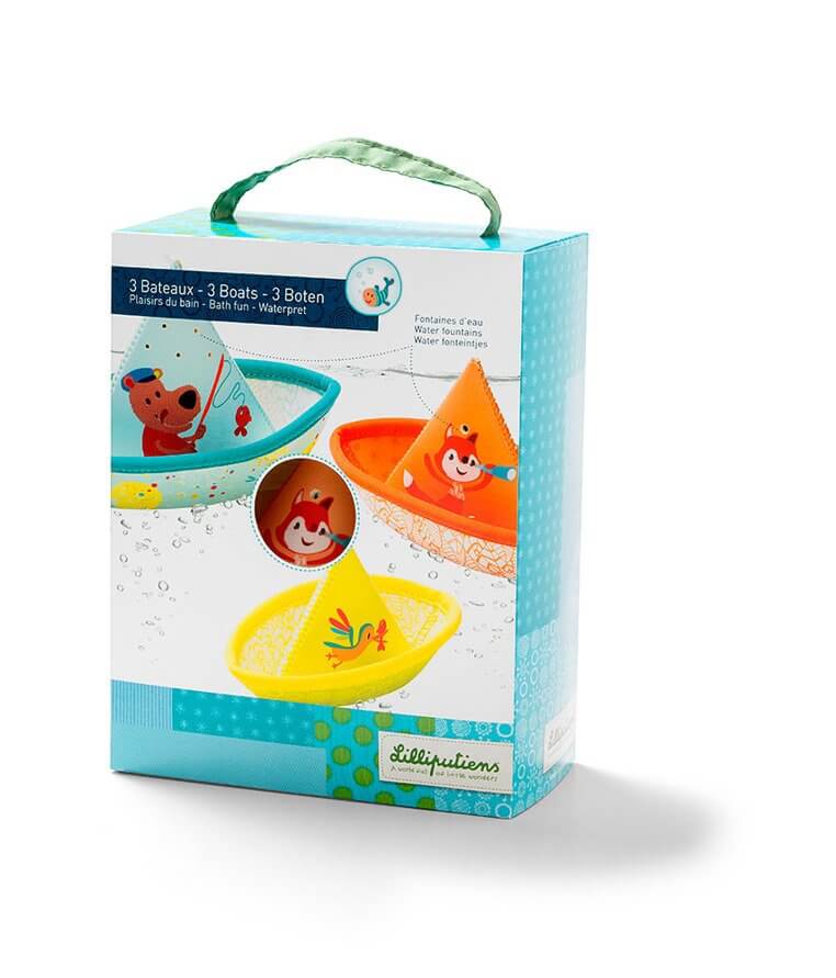 Zestaw 3 łódeczek do kąpieli belgijskiej marki Lilliputiens, wykonanych z miękkiego, łatwego do czyszczenia i szybkoschnącego neoprenu