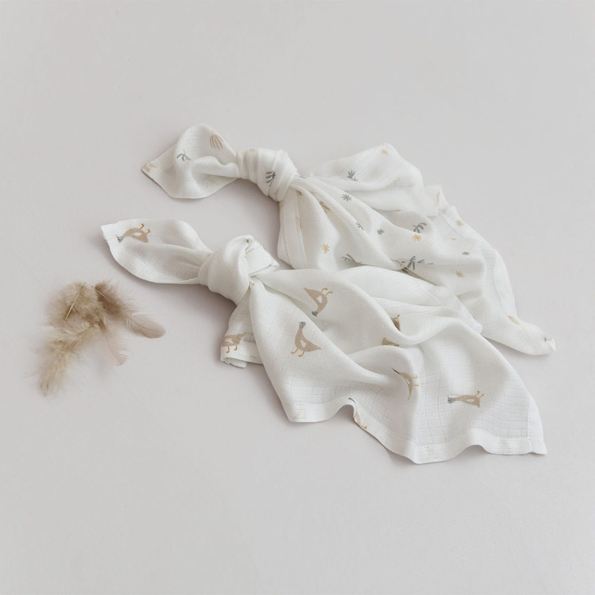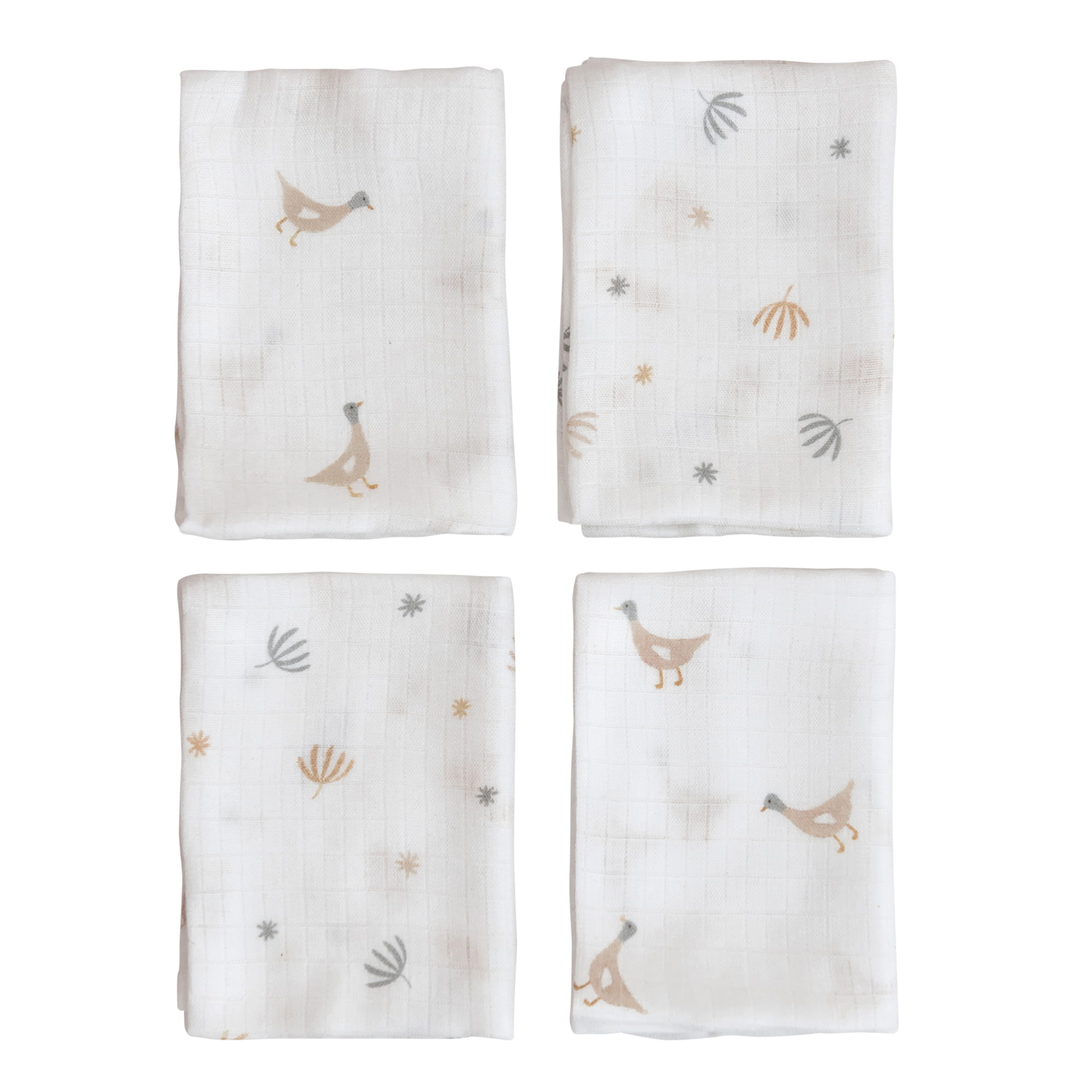 Zestaw czterech pieluszek muślinowych 43x43cm - kaczuszki i roślinki