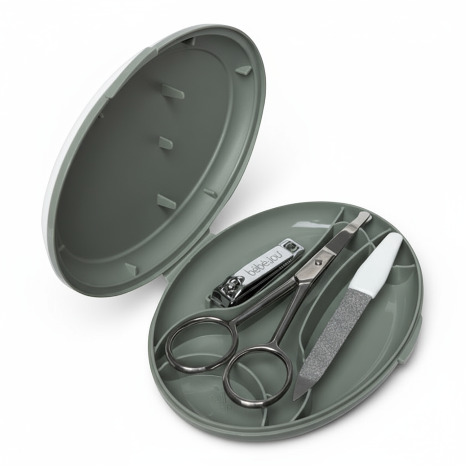 Zawiera bardzo wygodne i precyzyjne nożyczki wykonane ze stali nierdzewnej, obcinaczkę do paznokci oraz mały pilniczek. Nożyczki mają zaokrąglone końcówki przez co są bardzo bezpieczne. Zestaw może służyć od pierwszych dni życia, nawet do wieku szkolnego. Zapakowany w wygodne i ładne etui, łatwy do przechowywania.