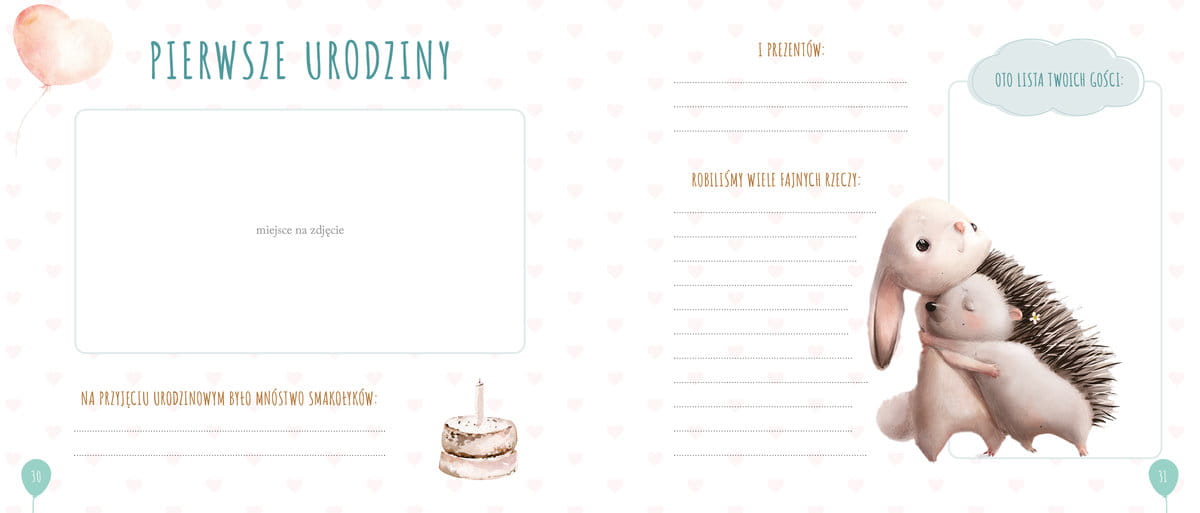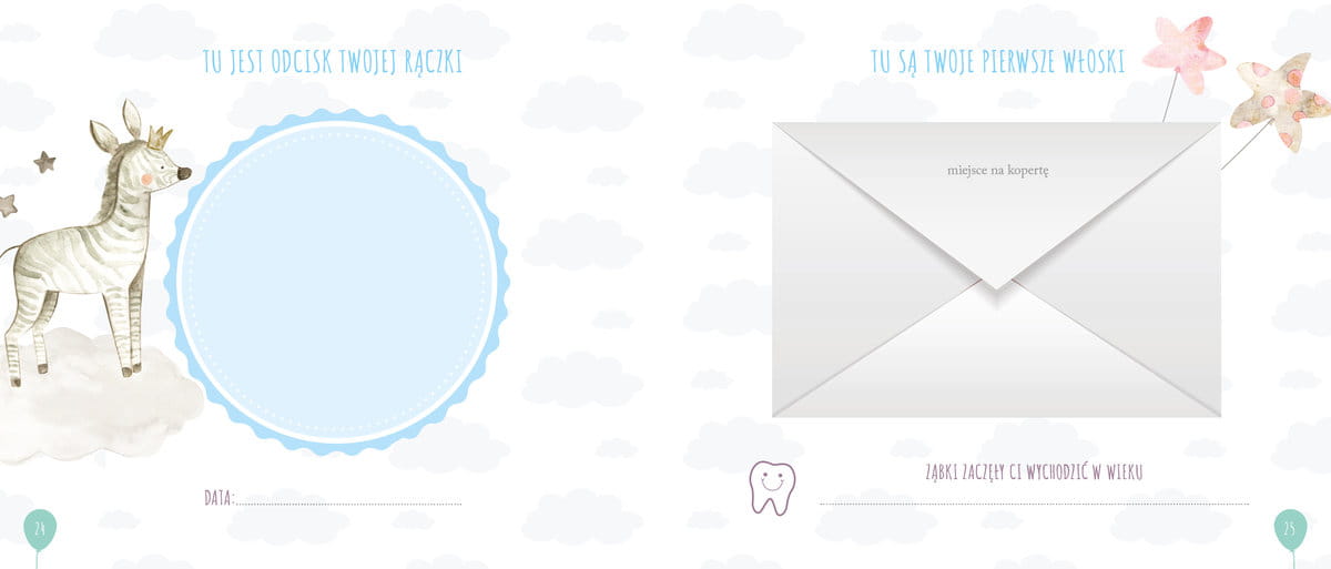 „Album maluszka” pomieści je wszystkie! Dzięki niemu rodzice będą mogli te najpiękniejsze chwile utrwalać, by później wielokrotnie do nich wracać. W albumie znajdzie się miejsce na pamiątkowe wpisy, krótkie wspomnienia, zdjęcia z każdego etapu rozwoju, pierwsze słowa…