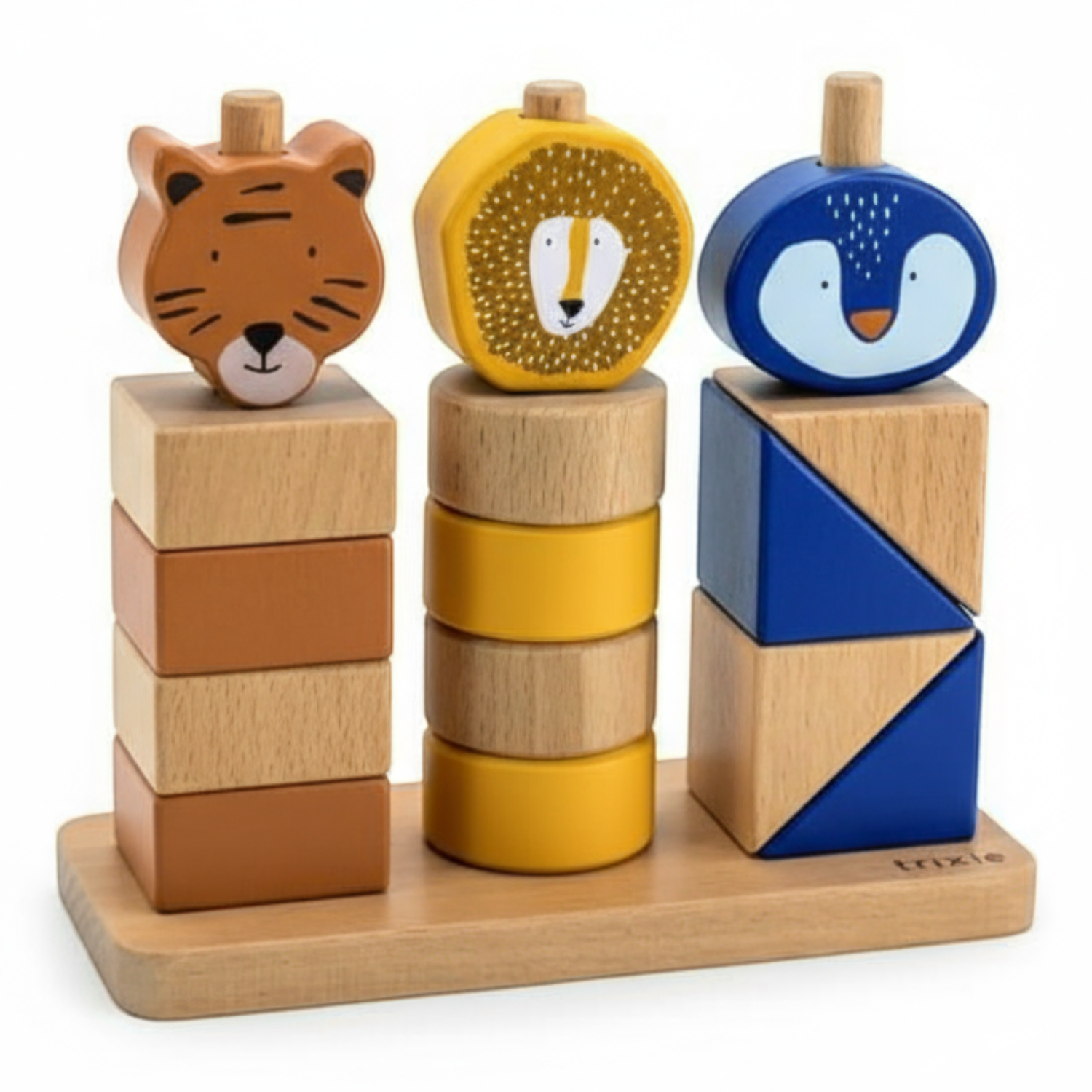 Drewniana układanka ze zwierzątkami to doskonała okazja do tworzenia wesołych kombinacji z geometrycznymi kształtami oraz umieszczania na szczycie uroczej twarzy jednego z przyjaznych zwierzątek. To świetny sposób na rozwijanie umiejętności motorycznych u dzieci, a także na naukę kształtów, kolorów i poznawanie świata zwierząt. Układanka została wykonana z 100% drewna FSC® certyfikowanego, co oznacza, że jest przyjazna dla środowiska. Do pomalowania wszystkich elementów użyto farb na bazie wody, które są bezpieczne dla dzieci i nietoksyczne. Zachęć swoje dziecko do zabawy, która łączy radość z nauką!