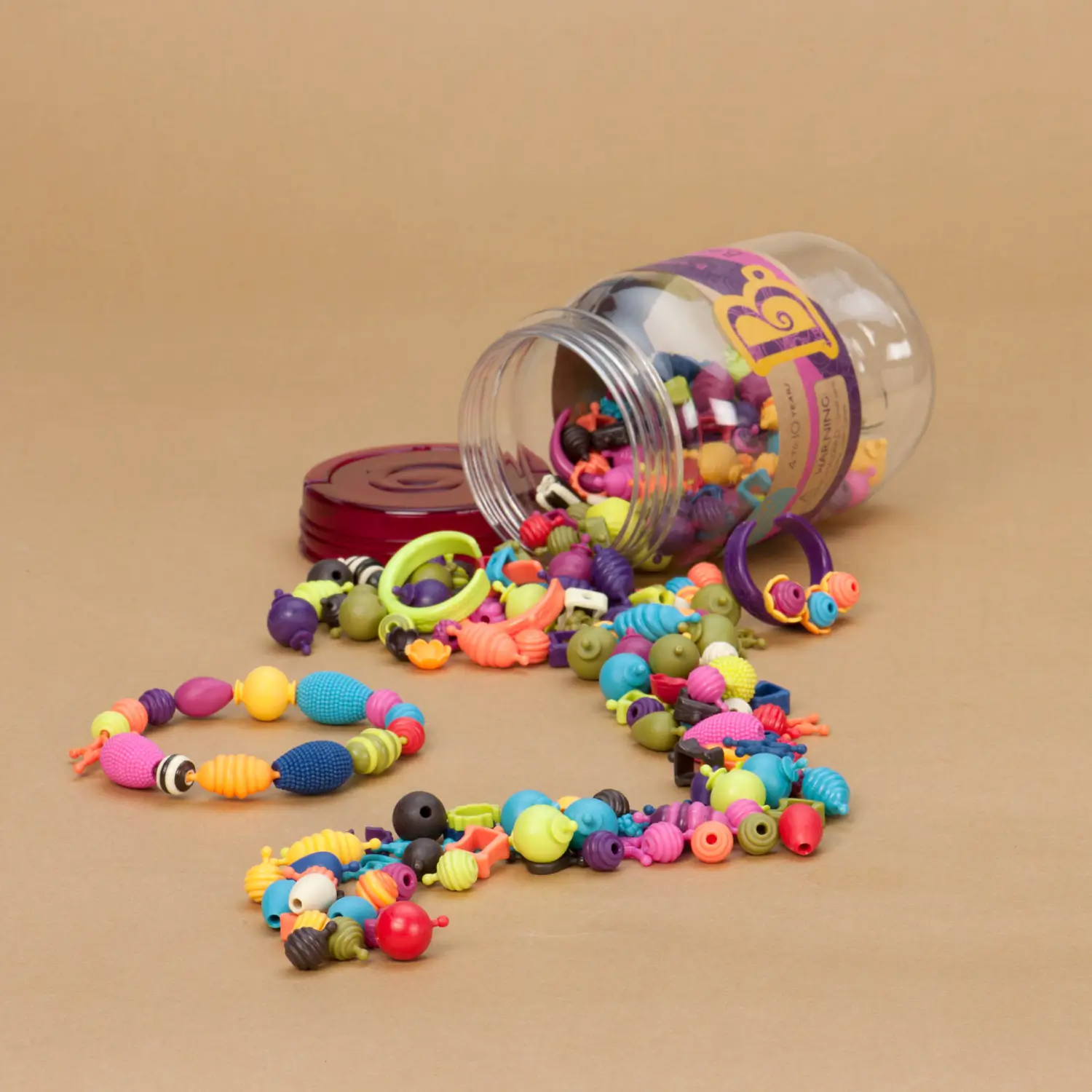 Wyjątkowe wzory, kolory i kształty – elementy bardzo zróżnicowane dotykowo i wzrokowo doskonale stymulują sensorycznie. Ponadto bazy do tworzenia bransoletek i pierścionków.