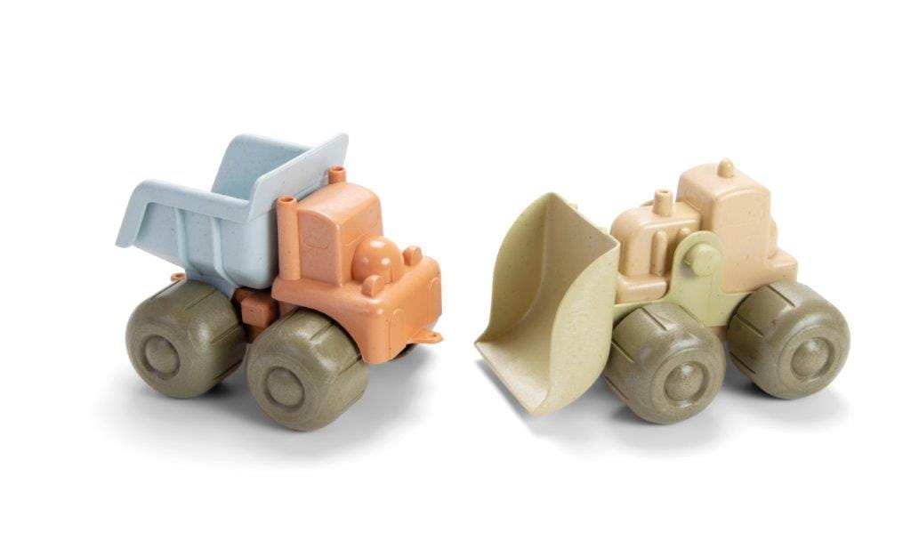 Solidny mały zestaw aut budowlanych z koparką i wywrotką w stonowanych, naturalnych kolorach. Idealnie pasują do małych dłoni, są przyjemne w dotyku, można nimi bawić się zarówno wewnątrz, jak i na zewnątrz. Po przejechaniu przez piaskownicę lub kałuże można je łatwo wyczyścić w zmywarce do naczyń. Auta gwarantują godziny zabawy malucha, ich elementy są ruchome - zarówno łyżka koparki jak i część załadunkowa koparki.
