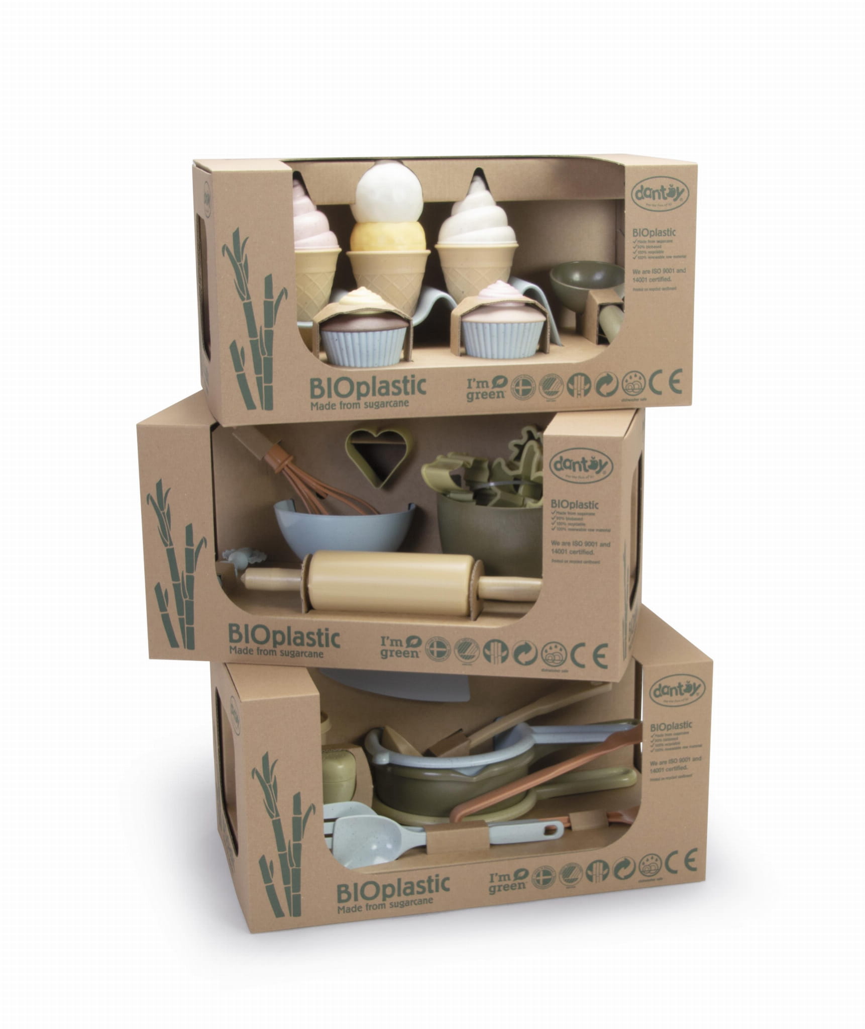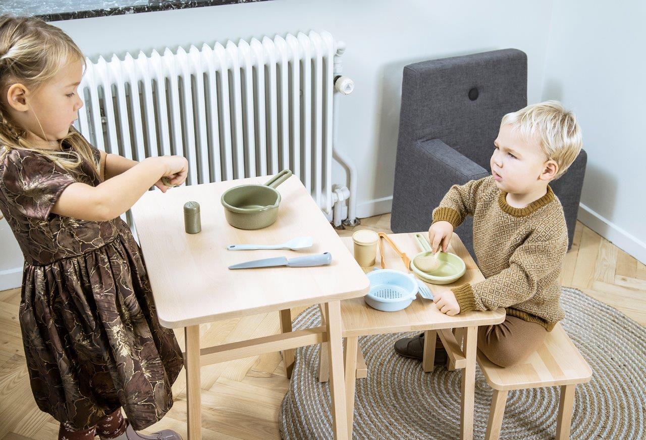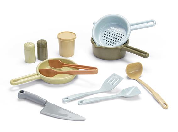 Zestaw przyborów do gotowania BIO jest produkowany w Danii z BIOplastiku wykonanego z trzciny cukrowej, która w 100% jest zrównoważonym surowcem, dzięki czemu posiada certyfikat Nordic Swan Ecolabel. Zabawki te są przyjazne dla środowiska i nie zawierają szkodliwych chemikaliów. Nasze pudełka do zabawek z linii BIO wykonane są z tektury z recyklingu.
