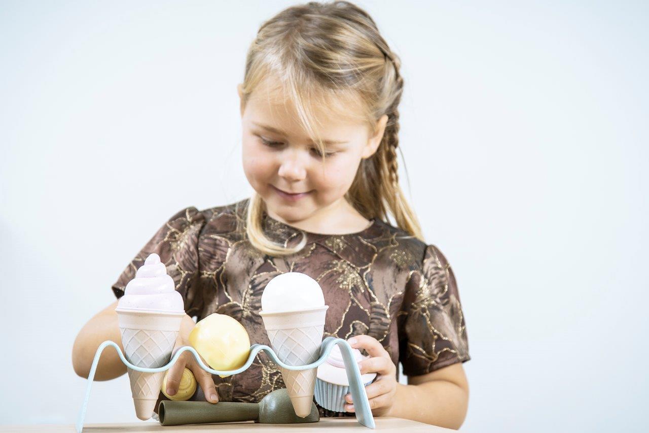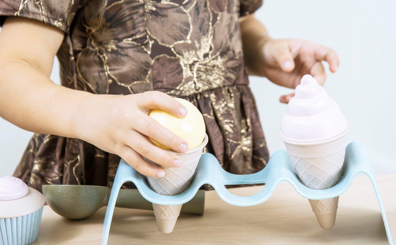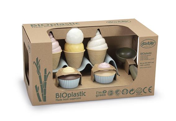 BIO zestaw do lodów jest produkowany w Danii z BIOplastiku wykonanego z trzciny cukrowej, która w 100% jest zrównoważonym surowcem, dzięki czemu posiada certyfikat Nordic Swan Ecolabel. Zabawki te są przyjazne dla środowiska i nie zawierają szkodliwych chemikaliów. Nasze pudełka do zabawek z linii BIO wykonane są z tektury z recyklingu.