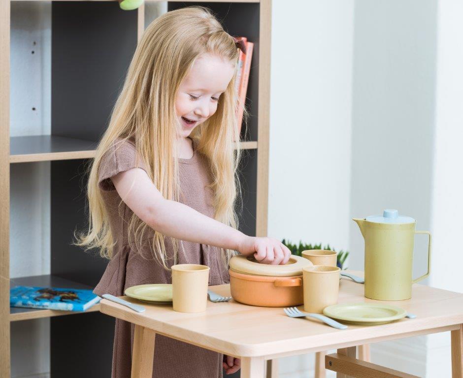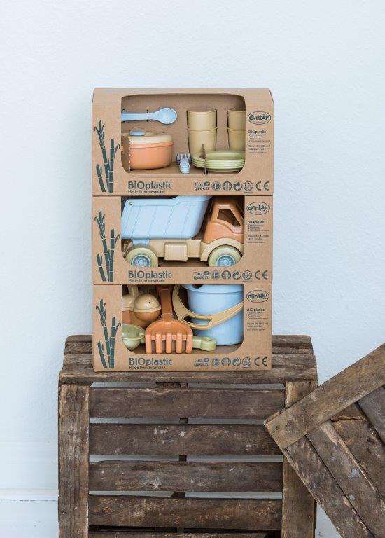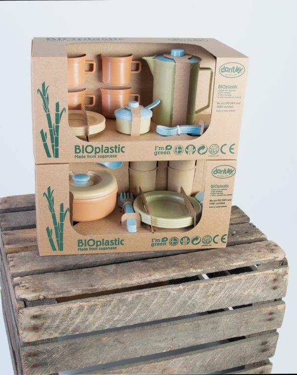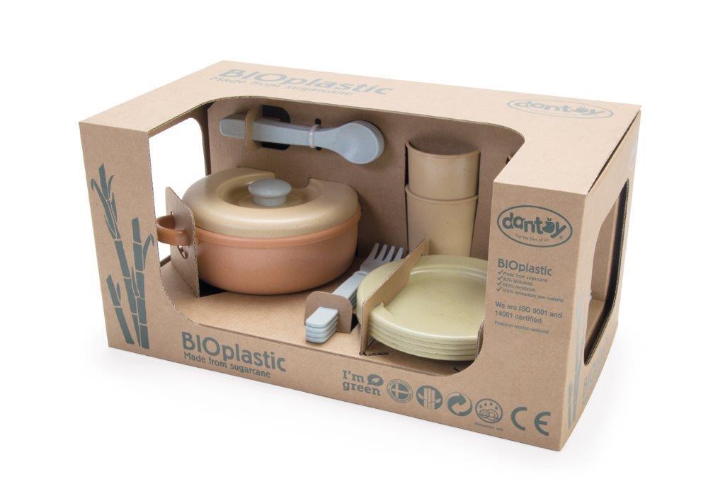 Zestaw obiadowy BIO jest produkowany w Danii z BIO plastiku wykonanego z trzciny cukrowej, która w 100% jest zrównoważonym surowcem, dzięki czemu posiada certyfikat Nordic Swan Ecolabel. Zabawki te są przyjazne dla środowiska i nie zawierają szkodliwych chemikaliów. Nasze pudełka do zabawek z linii BIO wykonane są z tektury z recyklingu.