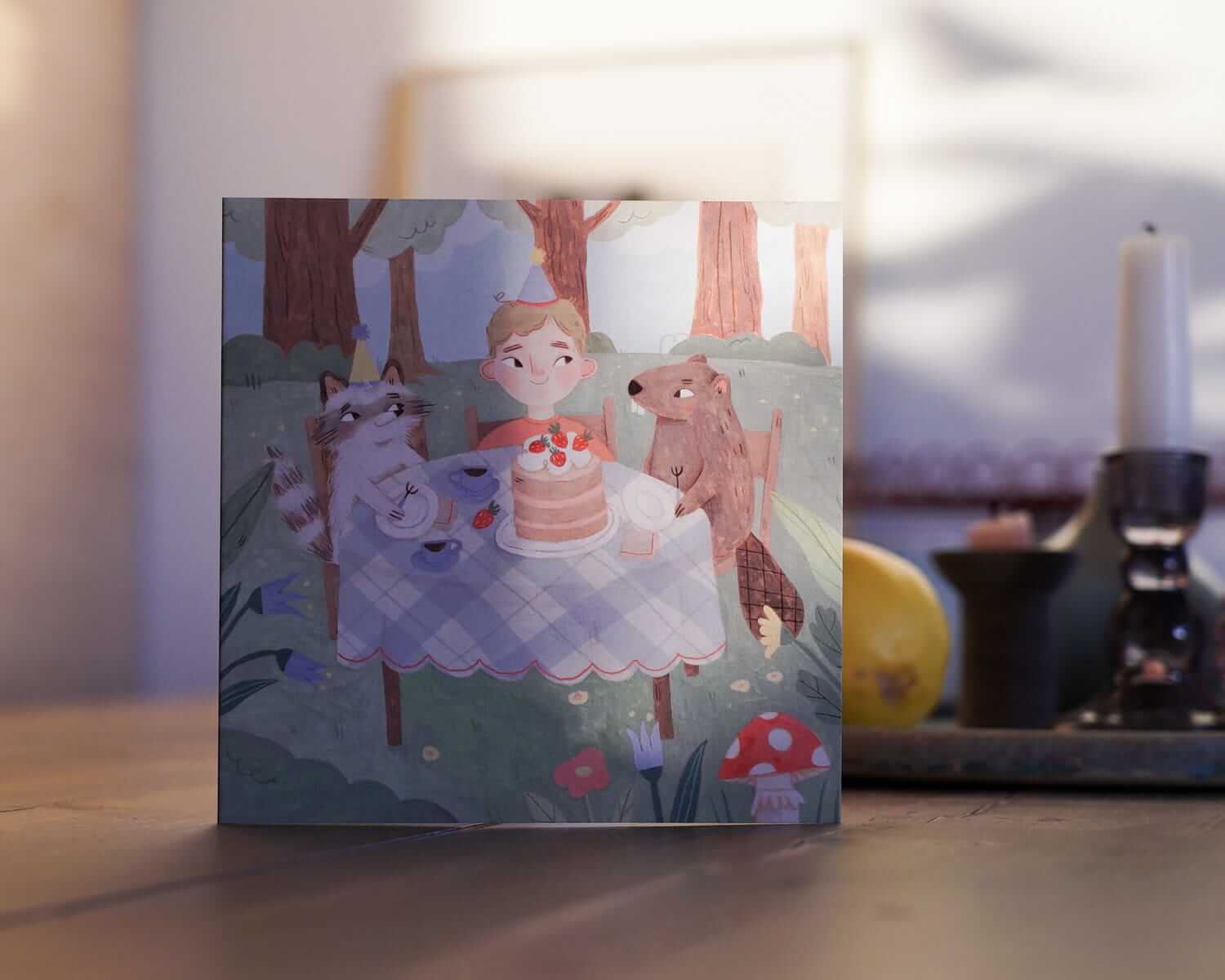 Takich, które zostaną na dłużej, bo są zapisane na papierze, a nie wystukane na klawiaturze. Motyw lasu na naszej kartce pasuje szczególnie do przyjęć organizowanych na świeżym powietrzu, chociaż zimą z kolei, może przywoływać ciepłe myśli związane z ciepłą porą roku ;)