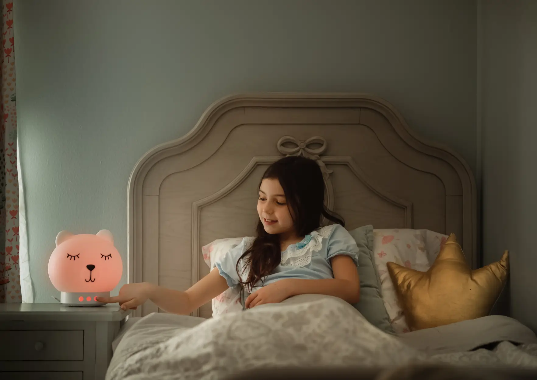 - Lampka nocna: wyposażona w 3 poziomy natężenia światła, dzięki którym łatwiej będzie wykonywać czynności pielęgnacyjne przed snem bez konieczności zapalania światła o wysokim natężeniu, które mogłoby rozbudzić dziecko.