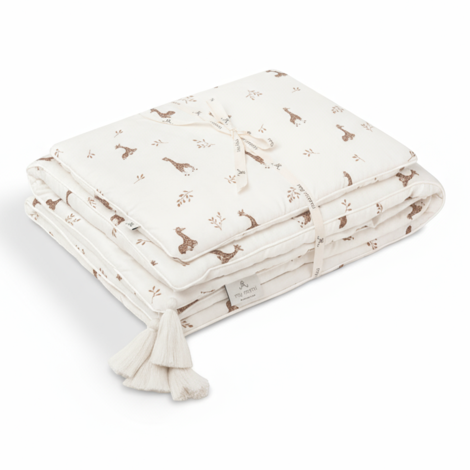 Kolekcja Giraffes to autorskie wzory My Memi. Motywy te zostały naszkicowane z dbałością o każdy szczegół na papierze, a następnie wypełnione kolorem. Gotowy graficzny wzór został następnie wydrukowany na 100% certyfikowanej tkaninie bambusowej farbami bezpiecznymi dla najmłodszych dzieci. Wyraziste rysunki idealnie współgrają ze stonowanymi kolorami tworząc wzory wyróżniające się subtelnością i lekkością. Produkty stworzone zostały z myślą o rodzicach pragnących skompletować wyprawkę wpisującą się w najnowsze trendy, ale jednocześnie ponadczasową. Kolekcja Giraffes wpisuje się w unikalną stylistykę My Memi, dlatego zachęcamy do tworzenia zestawów z innymi produktami marki.