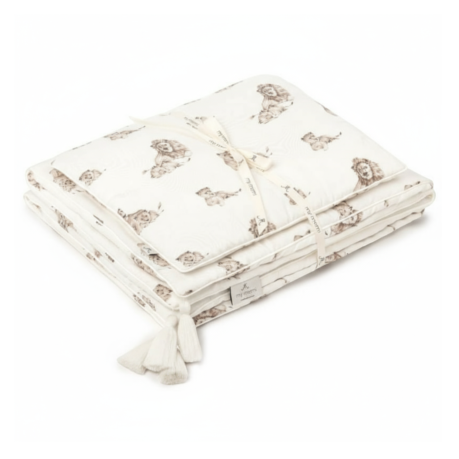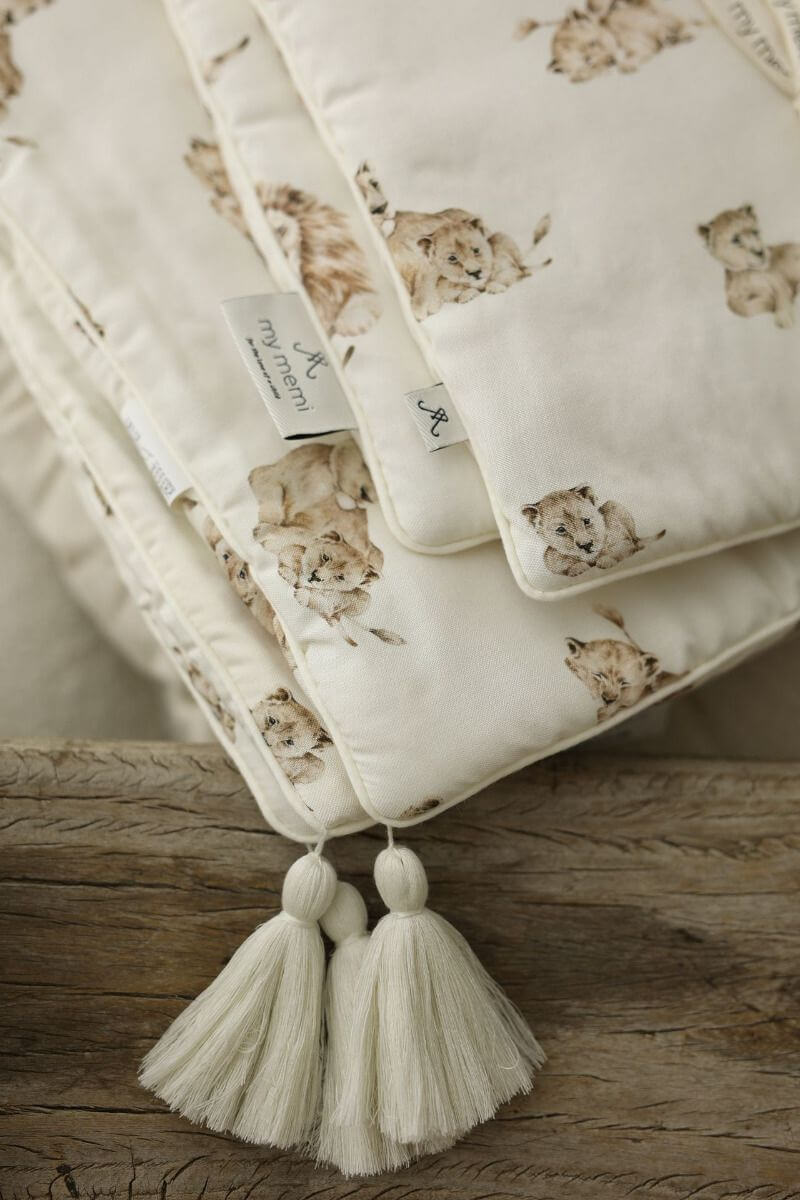 Kolekcja Lions to autorskie wzory My Memi. Motywy te zostały naszkicowane z dbałością o każdy szczegół na papierze, a następnie wypełnione kolorem. Gotowy graficzny wzór został następnie wydrukowany na 100% certyfikowanej tkaninie bambusowej farbami bezpiecznymi dla najmłodszych dzieci. Wyraziste rysunki idealnie współgrają ze stonowanymi kolorami tworząc wzory wyróżniające się subtelnością i lekkością, przywodzące na myśl odradzającą się przyrodę. Produkty stworzone zostały z myślą o rodzicach pragnących skompletować wyprawkę wpisującą się w najnowsze trendy, ale jednocześnie ponadczasową. Kolekcja Lions wpisuje się w unikalną stylistykę My Memi, dlatego zachęcamy do tworzenia zestawów z innymi produktami marki.