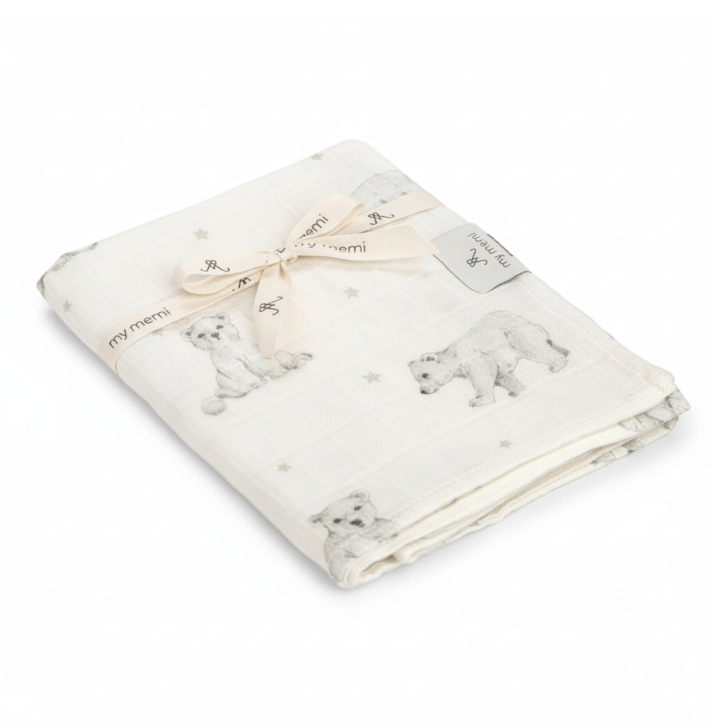 Kolekcja Little Bears to autorskie wzory My Memi. Motywy te zostały naszkicowane z dbałością o każdy szczegół na papierze, a następnie wypełnione kolorem. Gotowy graficzny wzór został następnie wydrukowany na 100% certyfikowanej tkaninie bambusowej farbami bezpiecznymi dla najmłodszych dzieci. Wyraziste rysunki idealnie współgrają ze stonowanymi kolorami tworząc wzory wyróżniające się subtelnością i lekkością, przywodzące na myśl odradzającą się przyrodę. Produkty stworzone zostały z myślą o rodzicach pragnących skompletować wyprawkę wpisującą się w najnowsze trendy, ale jednocześnie ponadczasową. Kolekcja Little Bears wpisuje się w unikalną stylistykę My Memi, dlatego zachęcamy do tworzenia zestawów z innymi produktami naszej marki.