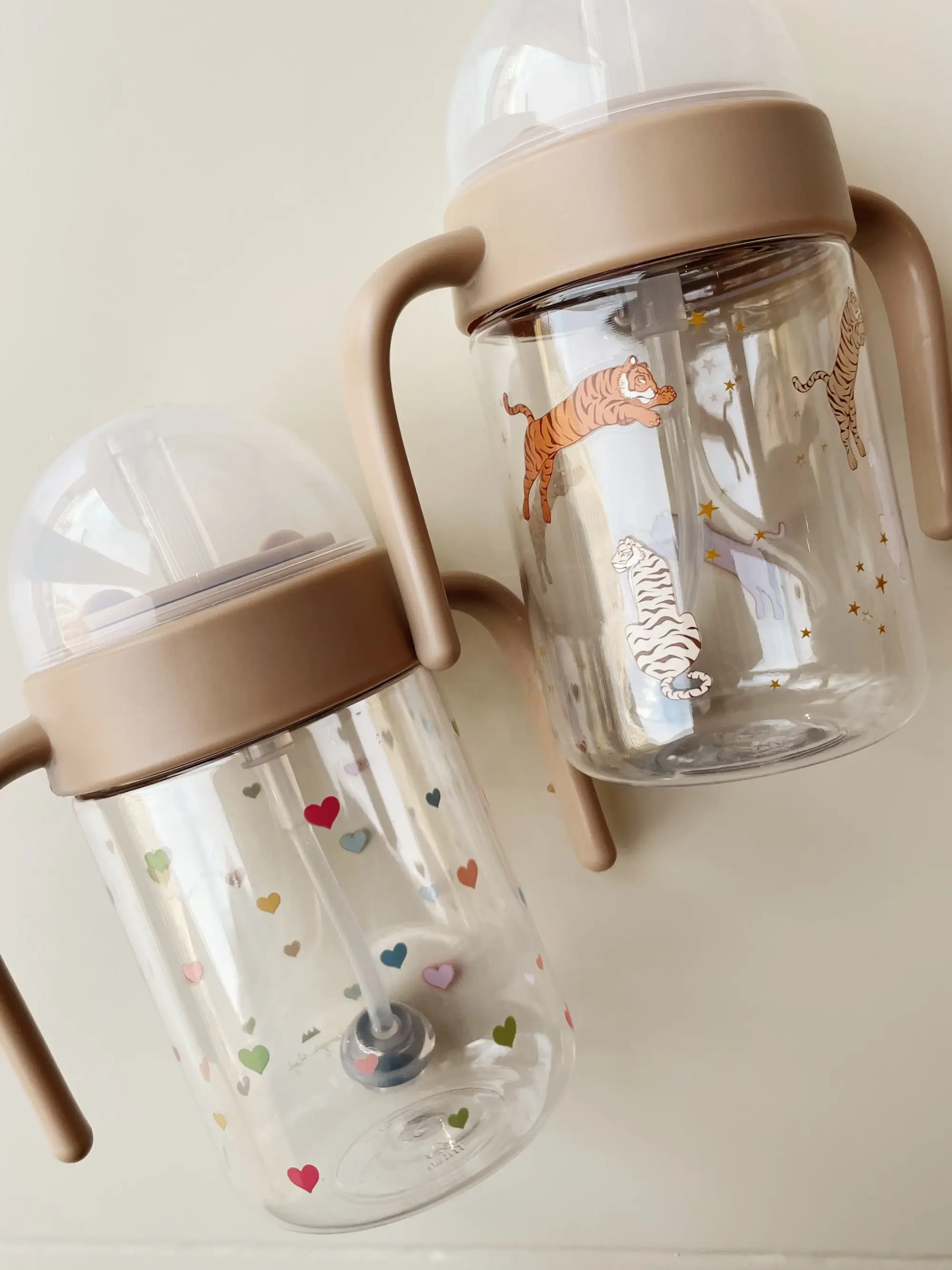 Butelka ze słomką i uchwytem naturalnie pasującym do małych rączek