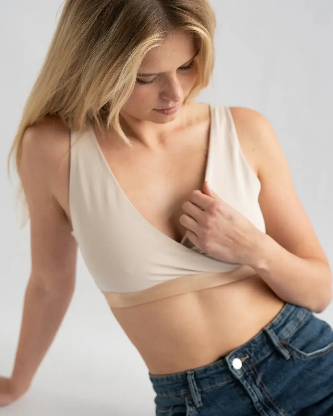 Biustonosz bawełniany do karmienia z dodatkowymi wkładkami wodoodpornymi - beżowy nude