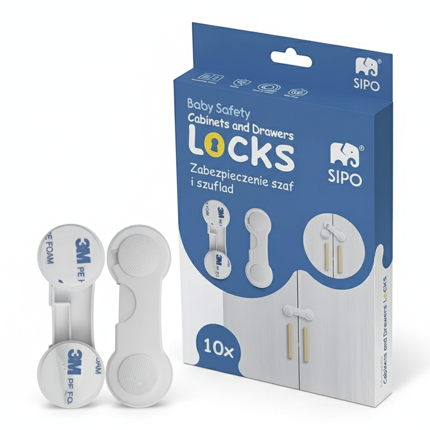 Blokada szaf i szuflad przed dziećmi na zatrzask, 10 szt.