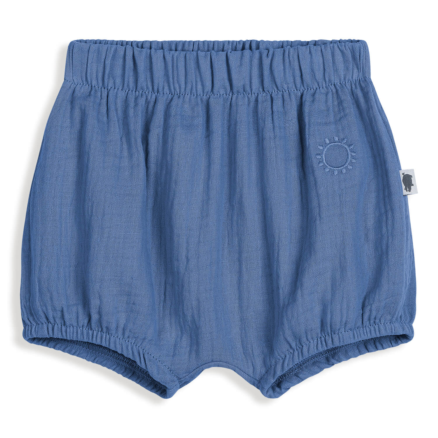 Uszyte z miękkiego 100% bawełnianego muślinu. Mają krój loose fit, dzięki czemu pomieszczą pieluchę i nadal są przewiewne. Nogawki są szerokie, dzięki czemu gumki nie wbijają się w nóżki dziecka i jest cyrkulacja powietrza.