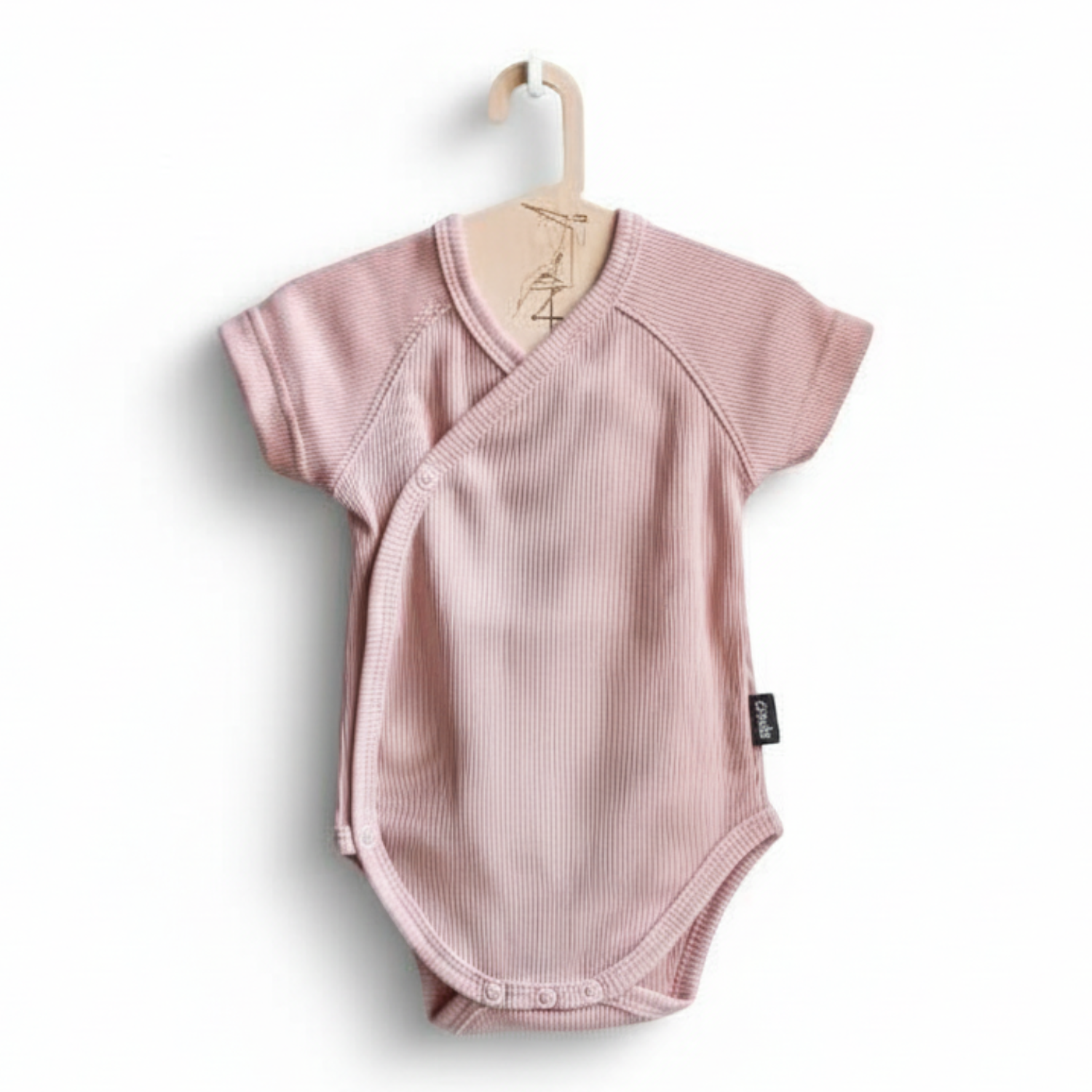Body kopertowe z grubego prążka, krótki rękaw - pudrowy róż