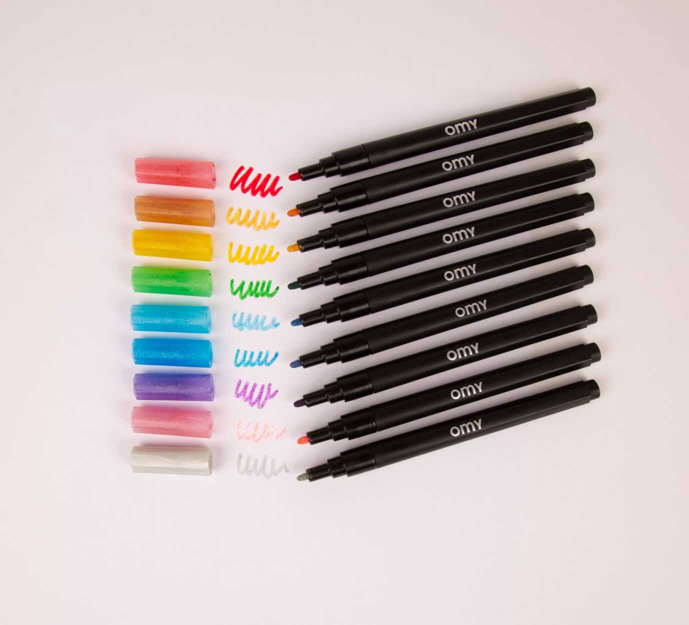 Wyjątkowy zestaw 9 kryjących flamastrów intensywnie nasączonych brokatem pozwoli Wam stworzyć wyjątkowe dzieła sztuki na różnych powierzchniach. Sprawdzą się również na ciemnych kartkach. Koloruj, rysuj i twórz w błyszczących barwach.