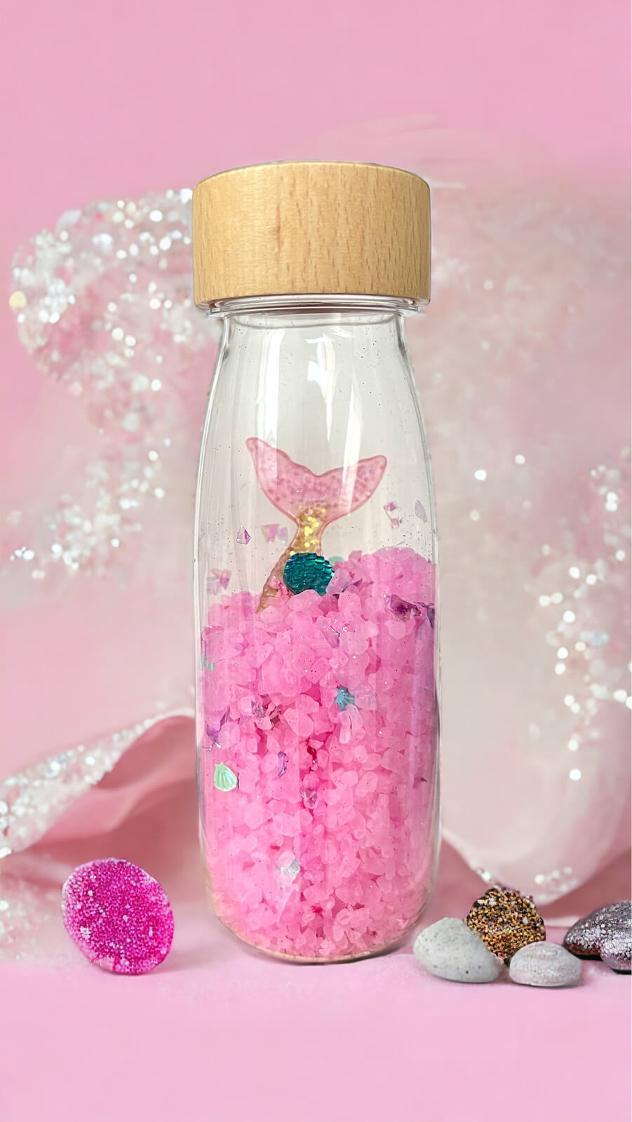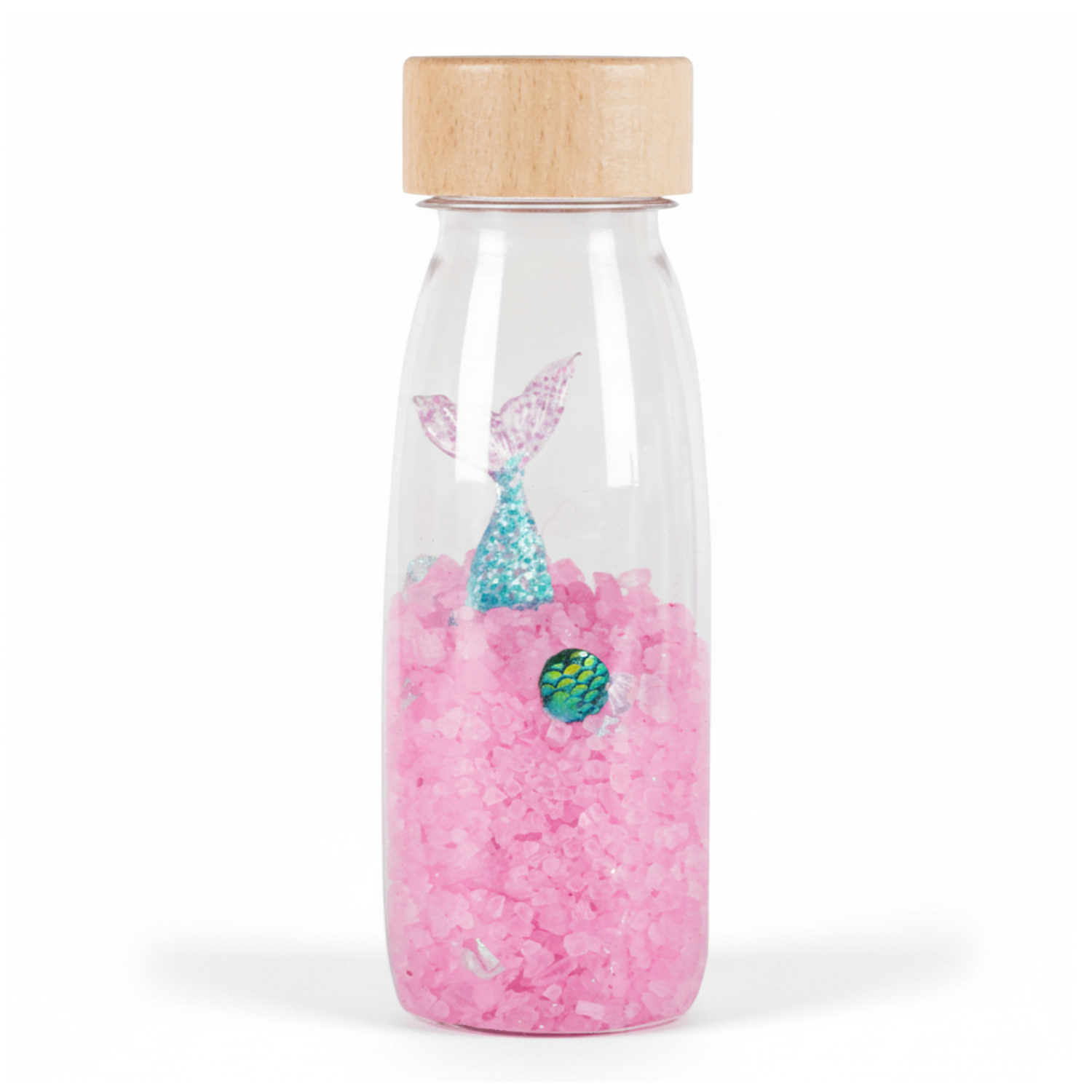 Butelki sensoryczne od Petit Boum to kolorowy świat zamknięty w niewielkiej, przystępnej dla dziecka formie. Bawią, uczą i stymulują wyobraźnię! Pozwól swojemu dziecku poruszać, potrząsać i manipulować butelką, aby odkrywać kolory i figurki tematyczne zamknięte w butelce. Różnorodna zawartość butelek pozwala odkrywać nowe, ciekawe dźwięki charakterystyczne dla ukrytych w butelce elementów. Zabawa butelką od Petit Boum rozwija zmysły i wyobraźnię dziecka! Czy rozpoznasz butelki po ich dźwiękach? Czy znajdziesz w środku syrenę? :)