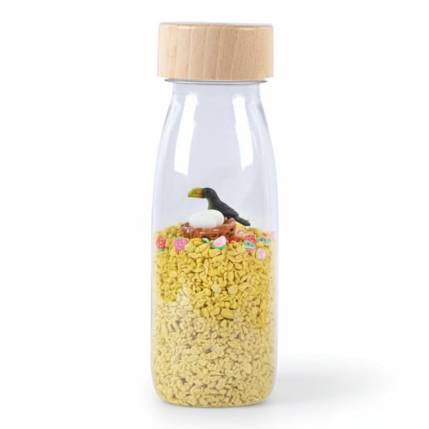 Kolory butelek Petit Boum inspirowane są naturą i naszą planetą, nawiązują tematycznie do umieszczonych w środku figurek przedstawiających zwierzęta i rośliny. Butelki pomogą się wyciszyć, wspierają dziecko w radzeniu z napięciem i niepokojem, które mogą towarzyszyć w przypadku przebodźcowania czy podczas codziennego odkrywania nowego dla nich świata.