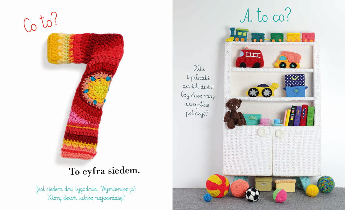 Dzięki pięknym włóczkowym ilustracjom i zabawnym wierszykom nauka matematyki to świetna zabawa!