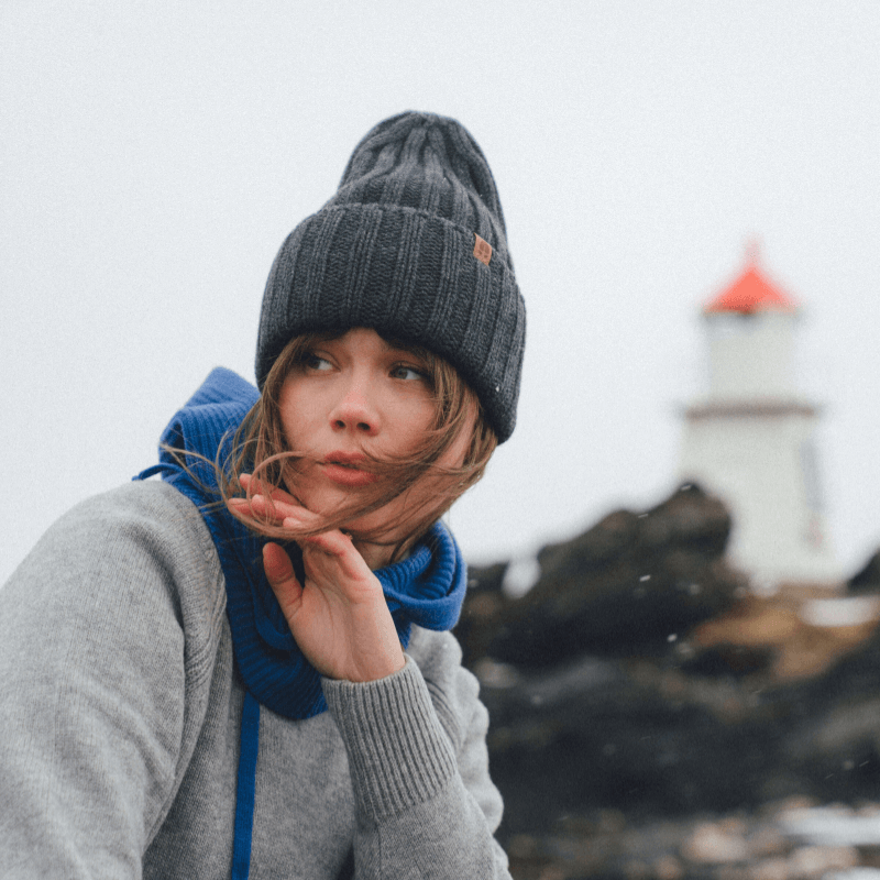 Czapka w prążek 100% wełny merino Rosomak - ołówkowy