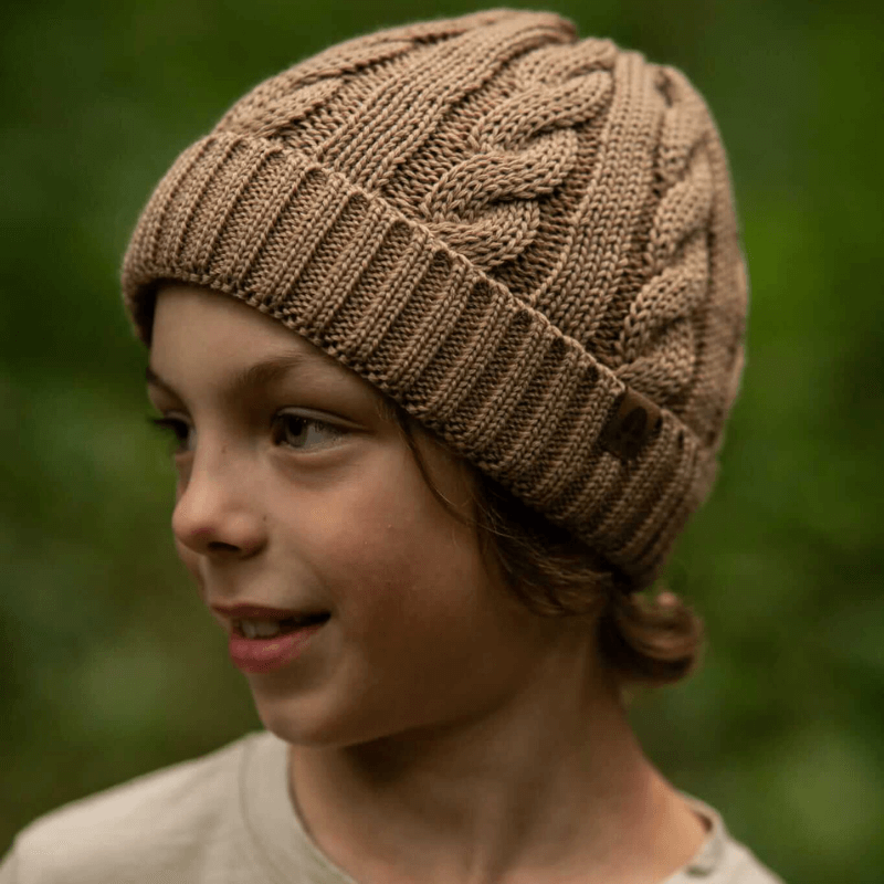 Czapka warkocz 100% wełny merino Owieczka - orzechowy
