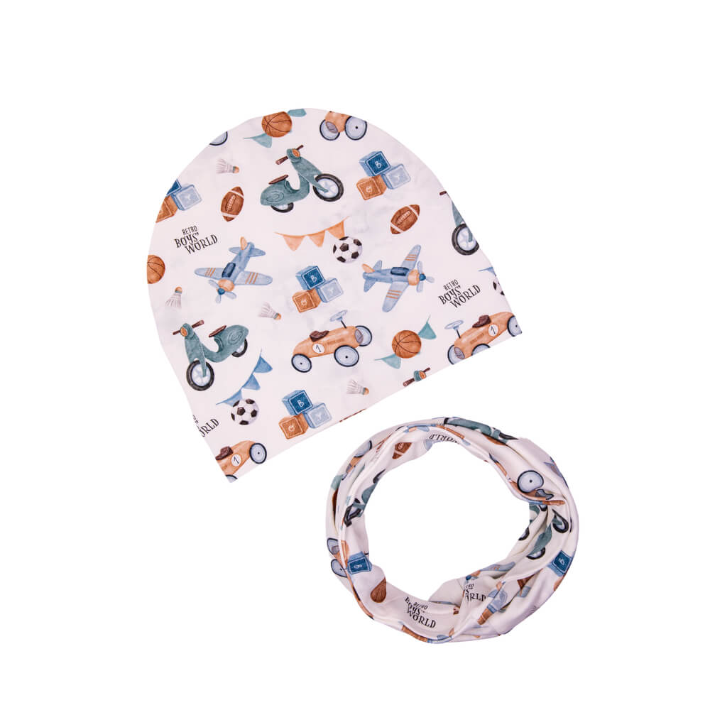 Uwaga: zestaw 0-6 miesięcy posiada w zestawie apaszkę na zatrzaski, pozostałe zestawy posiadają komin
