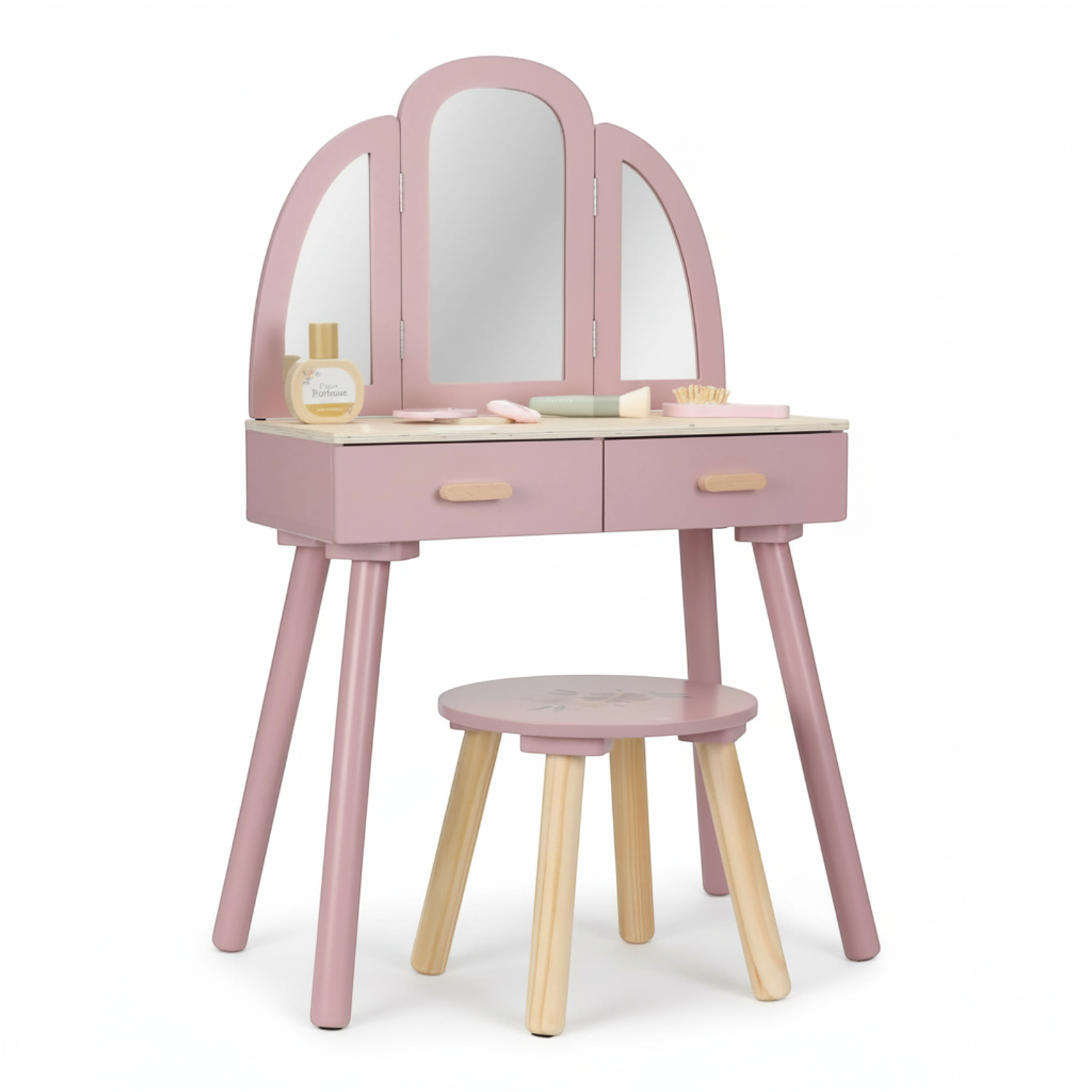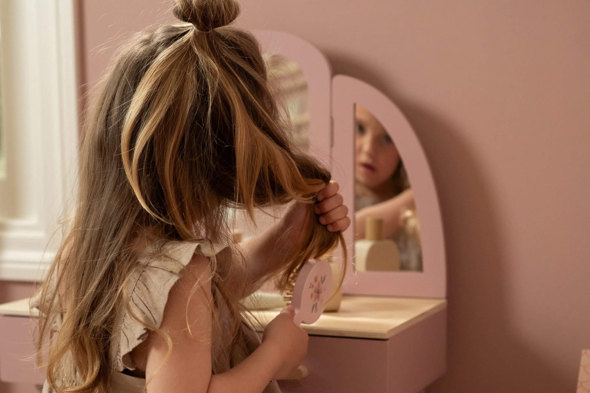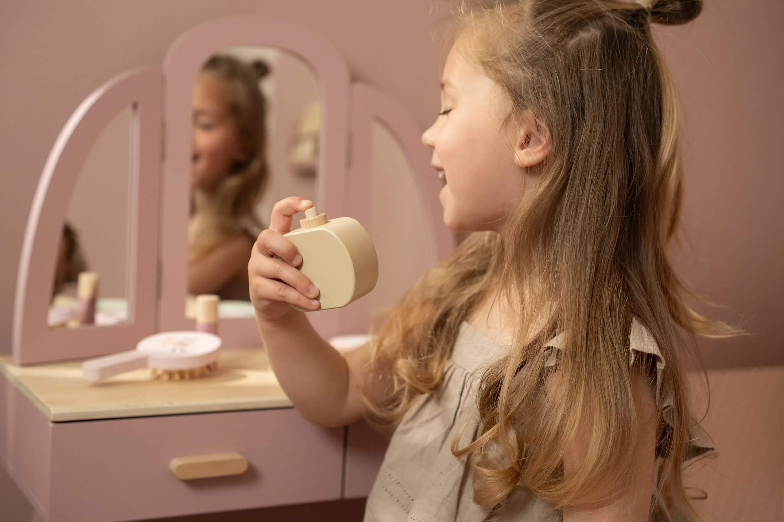 Drewniana toaletka Little Dutch w pastelowym różu to spełnienie marzeń każdej małej damy