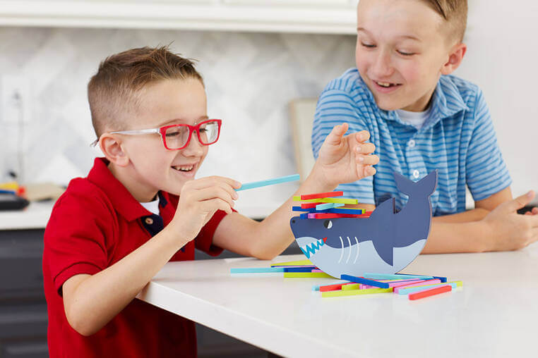 Zestaw składa się z drewnianego rekina i 40 drewnianych patyczków w różnych kolorach, które należy na tym rekinie umieszczać w taki sposób, by z niego nie spadły. Gracze robią to kolejno w swoich rundach, a ten, który doprowadzi do upadku patyczków – przegrywa. Zabawa ćwiczy koncentrację, zręczność i cierpliwość, a przy okazji trenuje koordynację ręka-oko. Do gry dołączona jest instrukcja (także w języku polskim). Zabawka zapakowana jest w estetyczne kartonowe pudełko. Idealnie nadaje się na prezent.