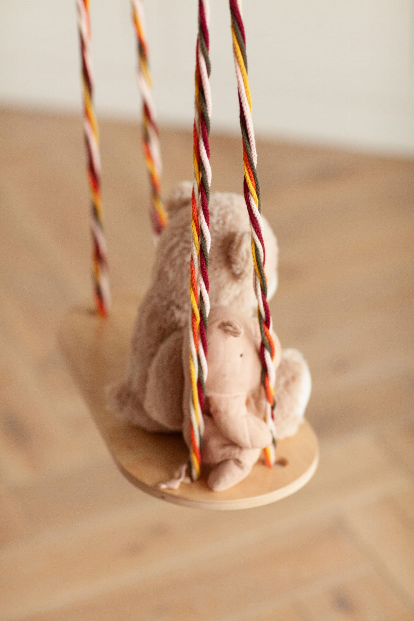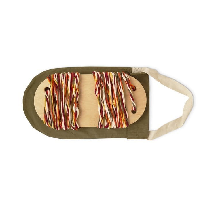 Materiał: sklejka brzozowa ze świadectwem Euro 1 z drewna z certyfikatem FSC, nietoksyczna farba wodna, bawełniany sznurek, metalowy karabińczyk