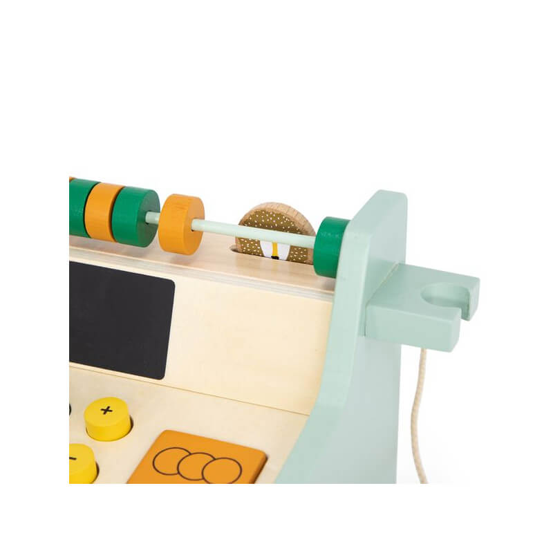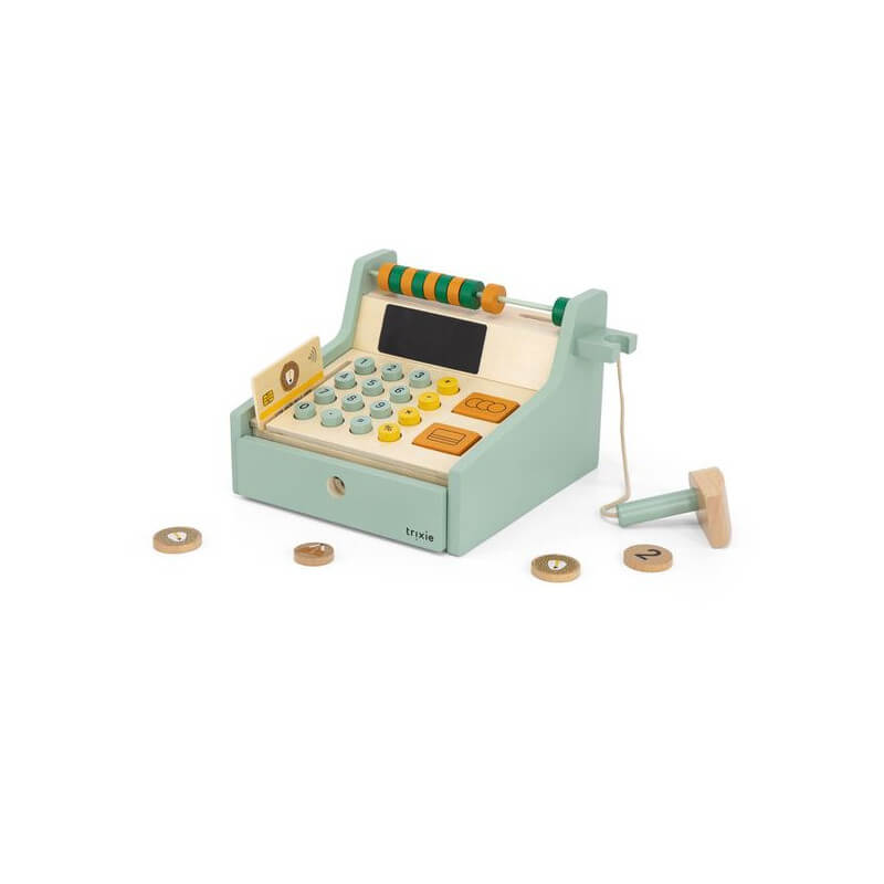 Drewniana kasa sklepowa z akcesoriami