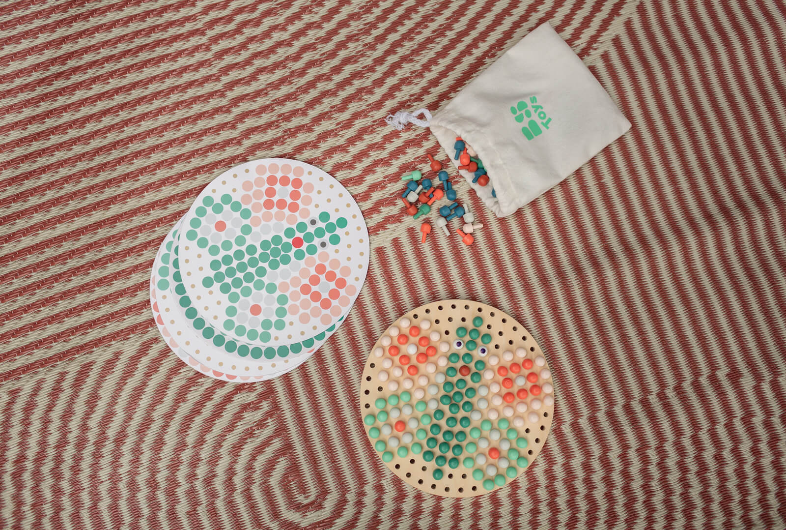 - Wzmacnia precyzję ruchów - staranne umieszczanie guzików i pinezek doskonali motorykę małą i koordynację ręka-oko.