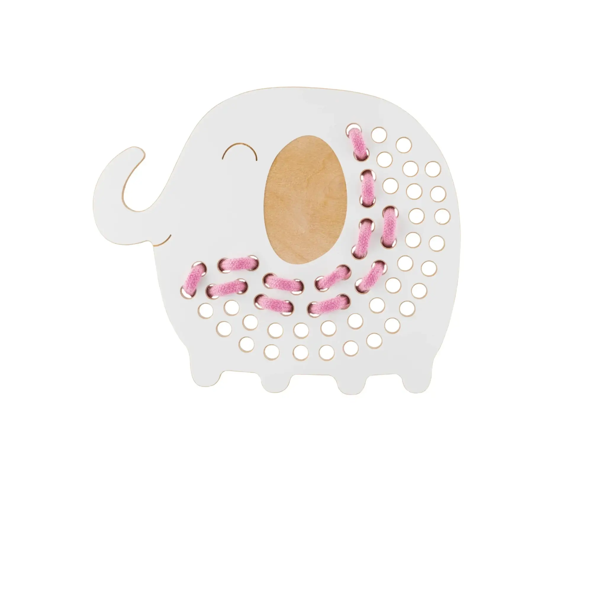 Przeplatanie sznurówki przez otwory w drewnianym zwierzątku to nie tylko zabawa, ale także ważne ćwiczenie rozwojowe. Dziecko podczas manipulowania elementami angażuje dłonie, wzrok i umysł, co sprzyja tworzeniu nowych połączeń neuronowych w mózgu.