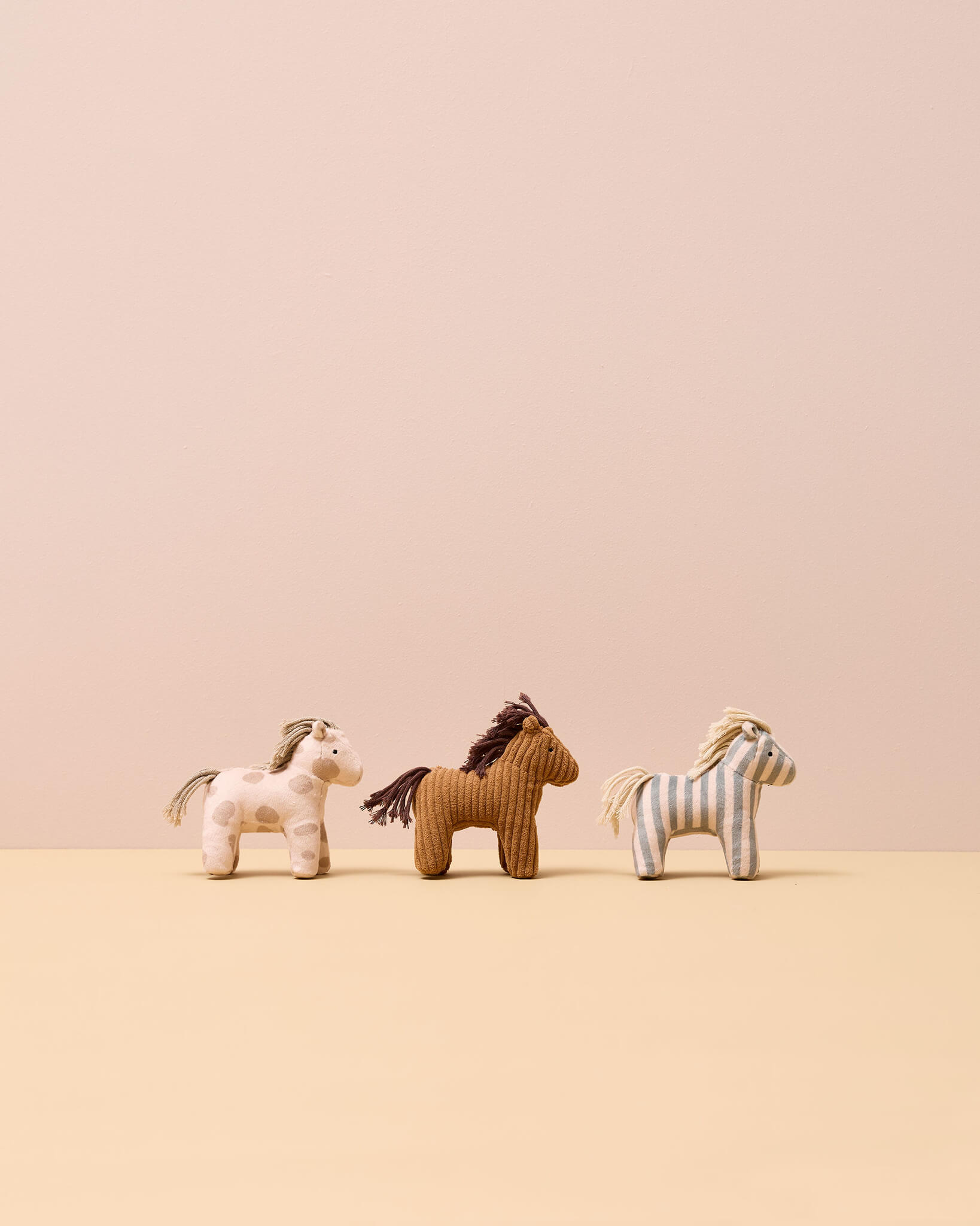 Sam, Dotty i Vera to miękkie, tekstylne koniki z wypełnieniem poliestrowym. Odpowiednia dla dzieci od około 2. roku życia. Stajnia wykonana jest ze sklejki z certyfikatem FSC i dostarczana w formie do samodzielnego montażu (na płasko). Wewnątrz znajdują się trzy oddzielne boksy.