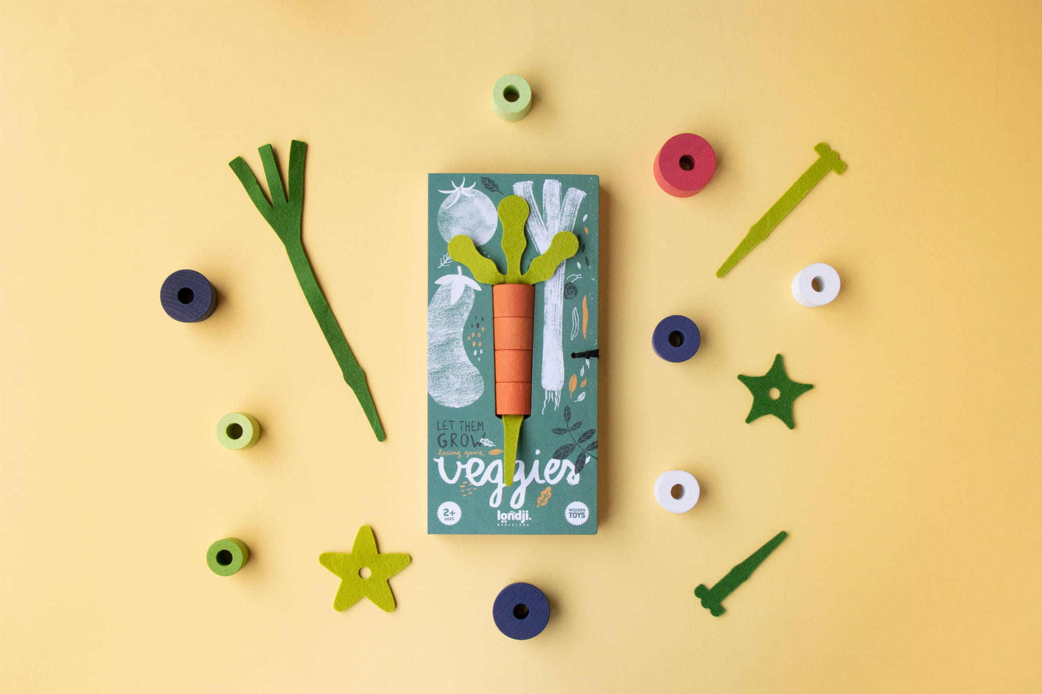 Spraw, by Twój ogród warzywny rósł! Nawlekanka - układanka z drewnianymi i filcowymi elementami.