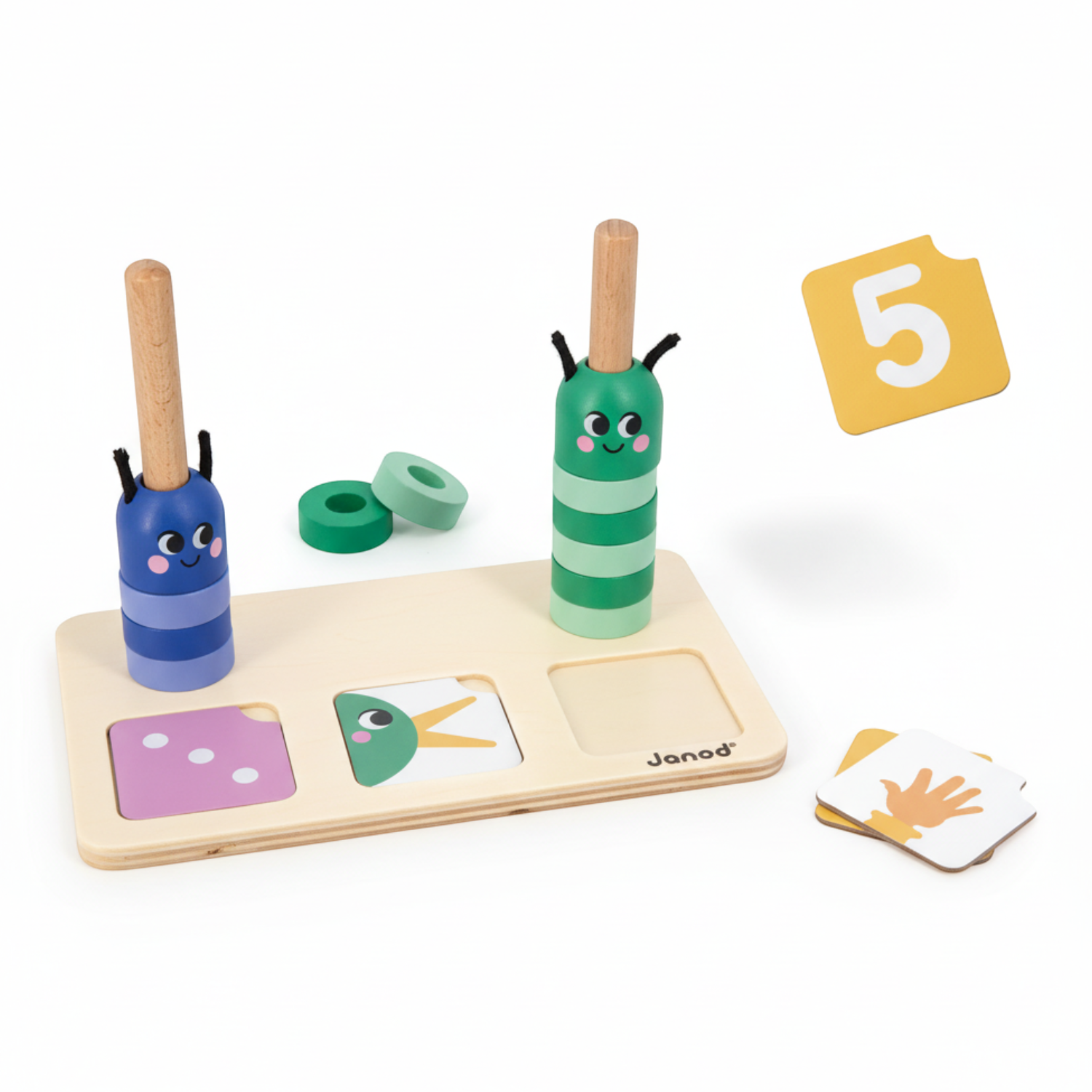 Zabawki edukacyjne marki Janod wyróżniają niebanalne rozwiązania, wysoka jakość materiałów i precyzyjne wykonanie. Podczas beztroskiej zabawy rozwijają zmysły dziecka i wspomagają jego rozwój dzięki mnogości funkcji. Dzięki przypisaniu do odpowiedniej kategorii wiekowej, służą ćwiczeniu adekwatnych na danym etapie umiejętności, jak motoryka dłoni czy kojarzenie kształtów i kolorów.