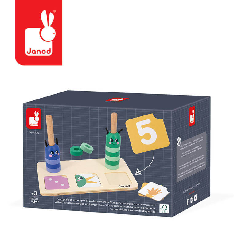 Drewniana układanka matematyczna Komponowanie i porównywanie liczb francuskiej marki JANOD