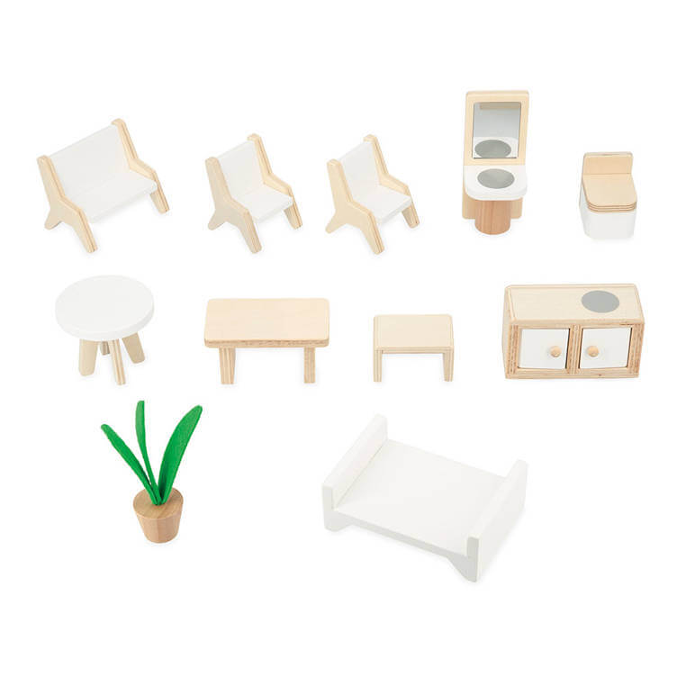 Drewniany domek dla lalek z 11 akcesoriami do salonu, kuchni, łazienki i sypialni to świetna zabawka dla każdego dziecka