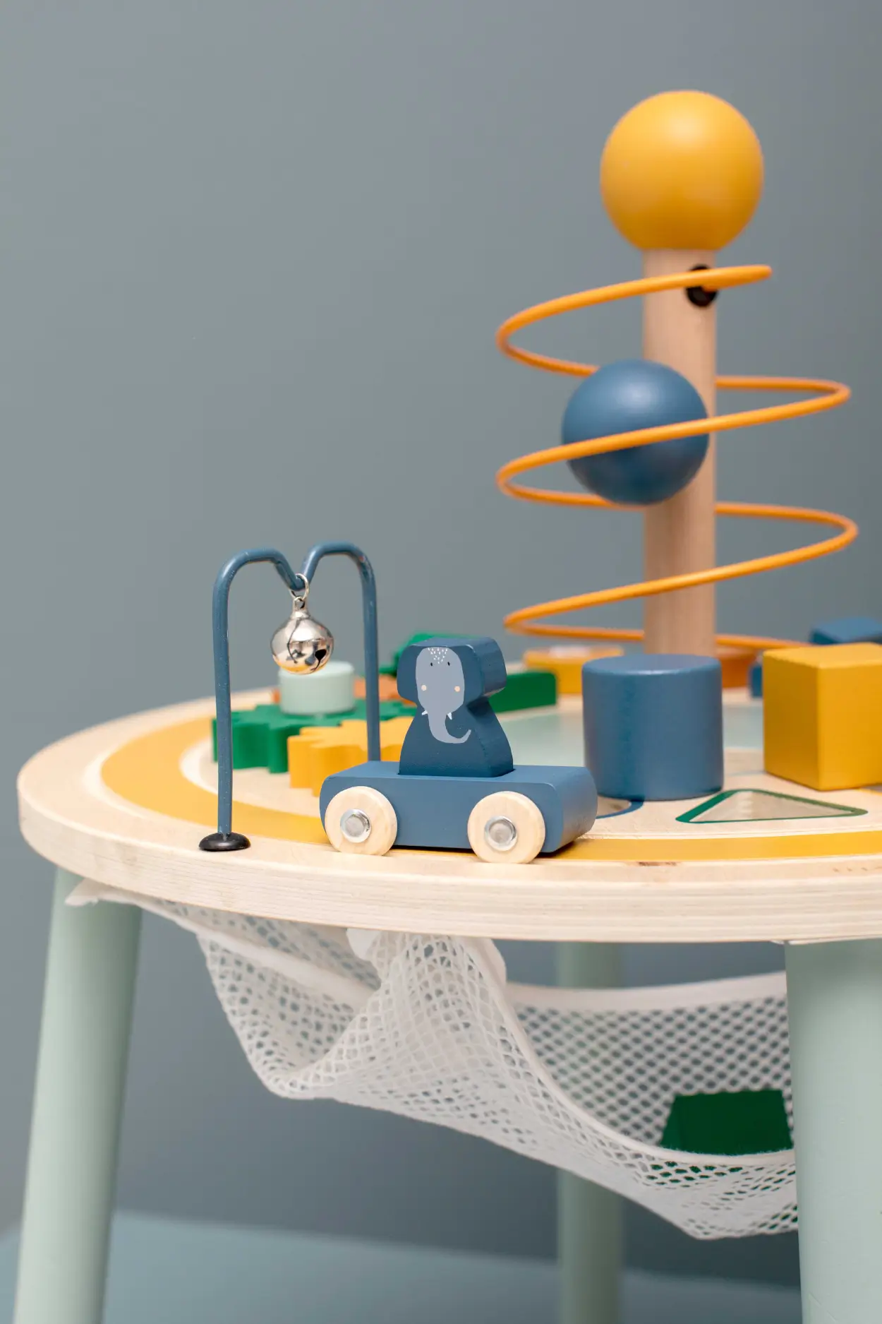 Drewniany stolik edukacyjny ze zwierzątkami