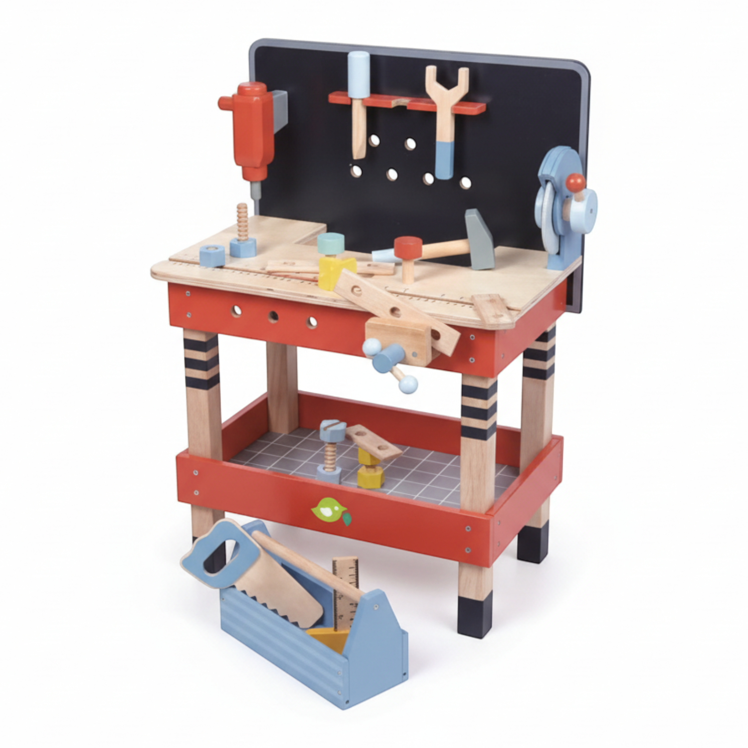 Drewniany warsztat z niezbędnymi akcesoriami. Idealna zabawka dla dzieci lubiących prace manualne!
