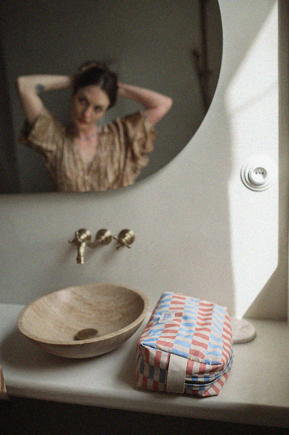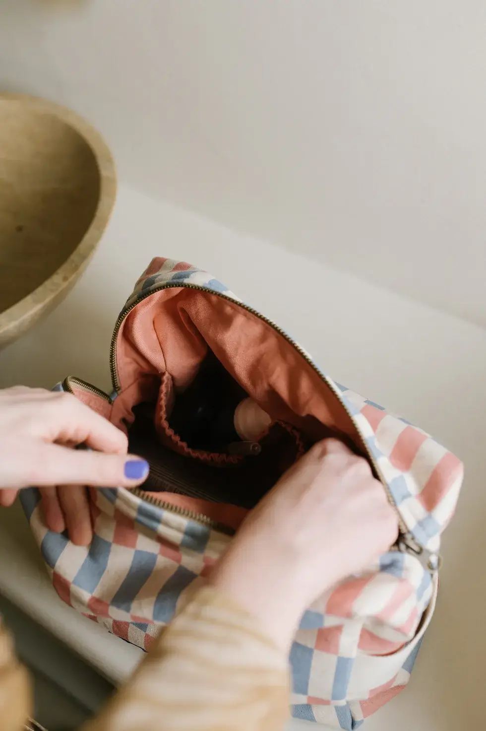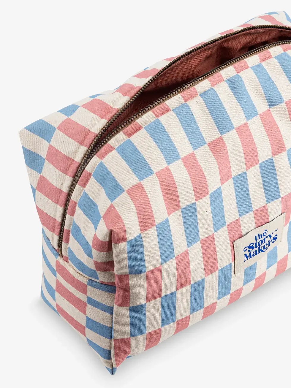 Miękka, maksymalnie pojemna bawełniana kosmetyczka z kontrastową podszewką z właściwościami wodoodpornymi
