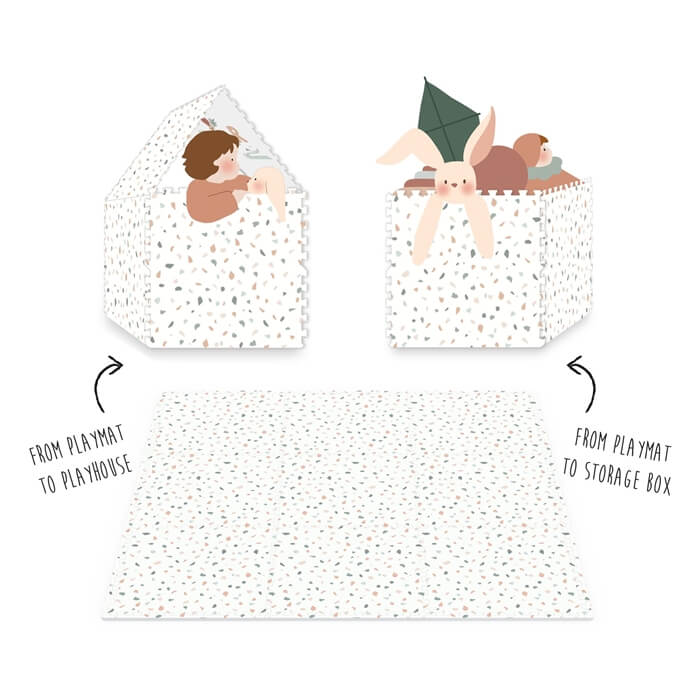 Podwójny nadruk, podwójna porcja zabawy! Mata piankowa Play&Go za sprawą swojego edukacyjnego wzoru zachęca maluchy do nauki przez zabawę. Odwróć produkt na drugą stronę i ozdób swój dom matą dekoracyjną z eleganckim powtarzalnym wzorem. Kiedy zabawa dobiegnie końca przekształć piankową matę w pudełko do przechowywania zabawek lub innych dziecięcych skarbów. A to nie koniec! Gdy maluch podrośnie matę zamień w domek, zamek lub mini-sklepik. Zobacz ile możliwości dla kreatywnej, nieskrępowanej zabawy!