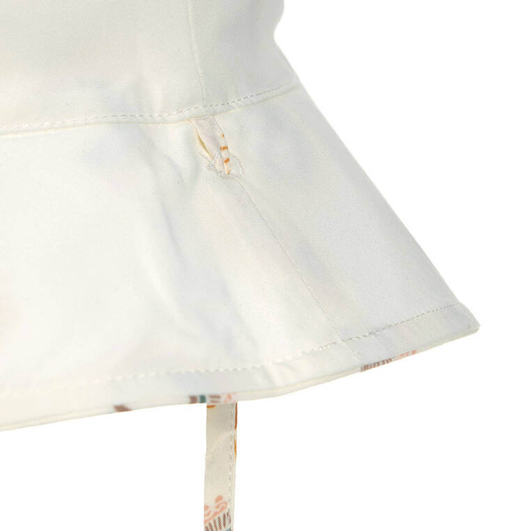 Zbyt długa ekspozycja na promieniowanie UV powoduje oparzenia słoneczne i uszkodzenia skóry. Ta odzież chroni jedynie zakryty obszar; pozostałe części ciała należy chronić niezależnie. Kapelusz nie zapewnia ochrony przed odbitym lub rozproszonym ultrafioletowym promieniowaniem słonecznym. Rzeczywisty czas ochrony, jaką zapewnia zależy od stanu skóry dziecka i intensywności promieni słonecznych.