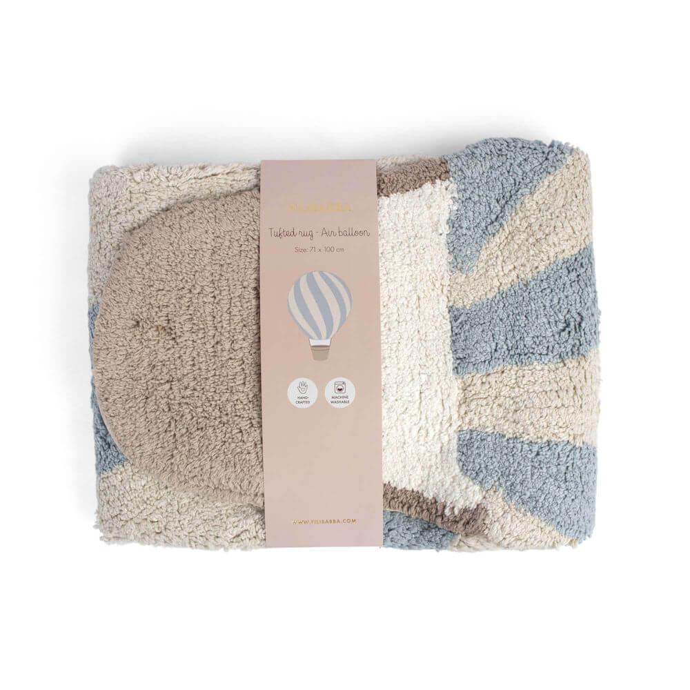 Ten klasyczny wzór w postaci balonu na gorące powietrze w delikatnym niebieskim kolorze wprowadza niepowtarzalny urok do przestrzeni Twojego dziecka. O wymiarach 100 cm w najdłuższym punkcie i 90 cm w najszerszym, dywan idealnie pasuje do dziecięcego kącika, nadając mu charakter, ale nie przytłaczając wnętrza. Motyw balonika pobudza wyobraźnię, pozwalając maluchom marzyć o podróżach i niezwykłych przygodach.