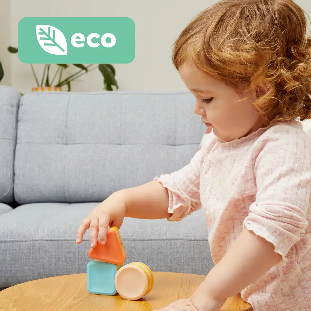 Dzieci mogą odkrywać rytm, tworzyć swoją muzykę i świetnie się przy tym bawić. Każda grzechotka wydaje swój własny, niepowtarzalny dźwięk. Grzechotki są wystarczająco trwałe, aby przetrwać wiele hałaśliwych muzycznych przygód. Produkt są częścią serii ECO i jest wykonany z bioplastiku.