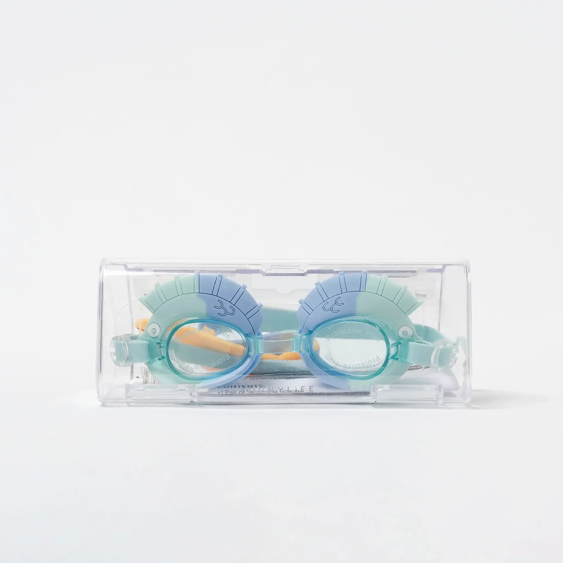 Zabawne, wyraziste i praktyczne - niebieskie okularki z Finnem, pomarańczową rybką na tyle głowy, to strzał w dziesiątkę dla małych pływaków