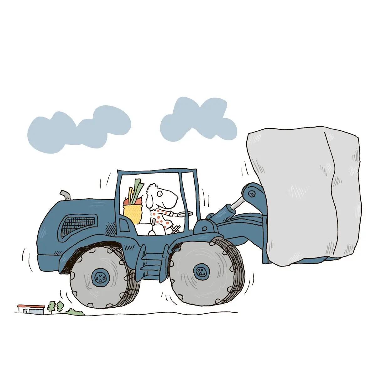 Co tu się dzieje! Krowa obsługuje dźwig, Słonica zmienia wywrotkę w zjeżdżalnię, a Wilk rozrabia minikoparką. Kura i Kaczka sprawdzają, kto ma większą kosiarkę,a w betoniarce miesza się… coś pysznego.