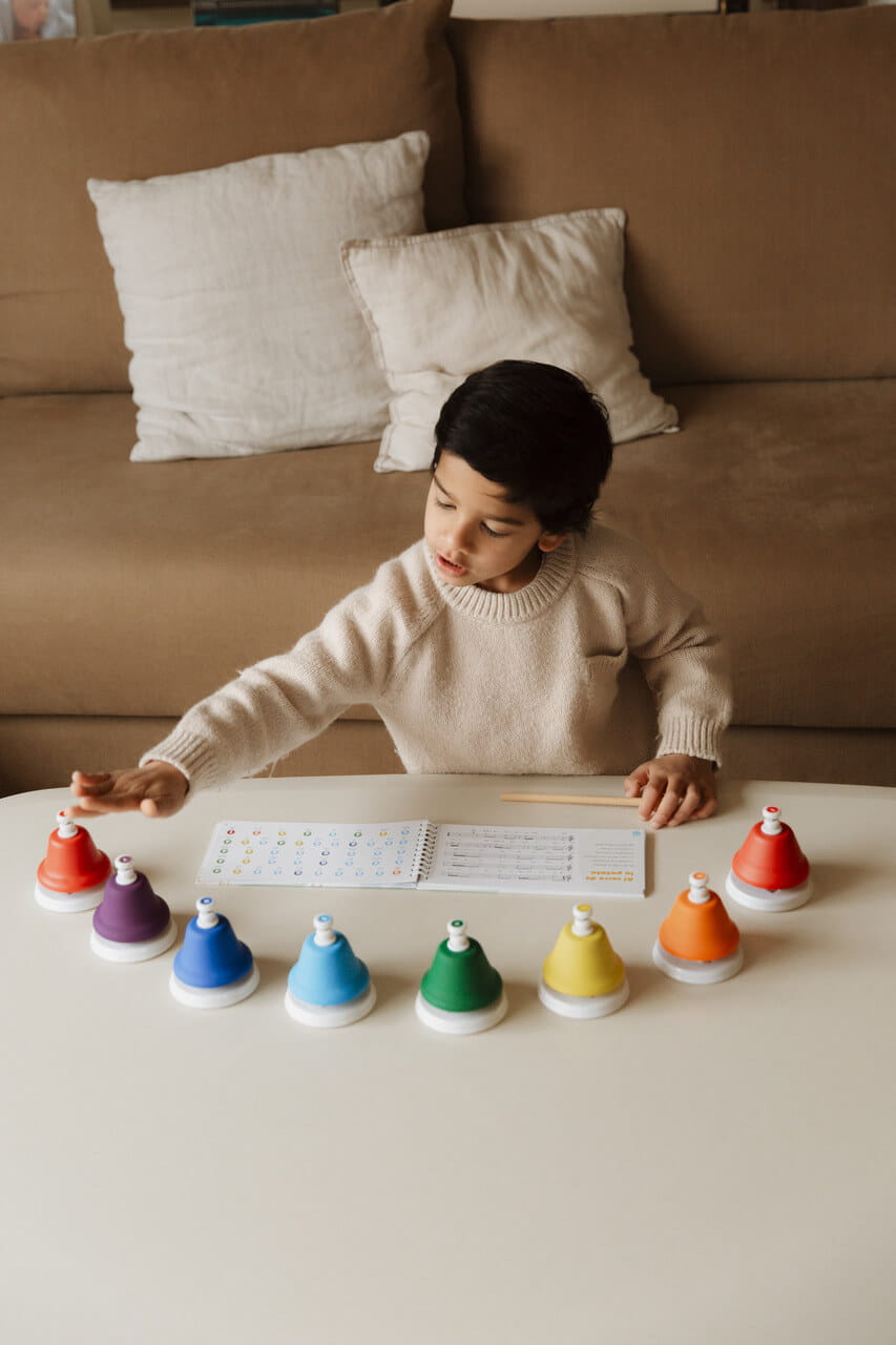 - Twórz muzykę natychmiast: Zestawienie kolorowych dzwonków z odpowiadającymi im nutami sprawia, że dzieci mogą od razu grać proste piosenki, rozwijając słuch muzyczny i poczucie rytmu.